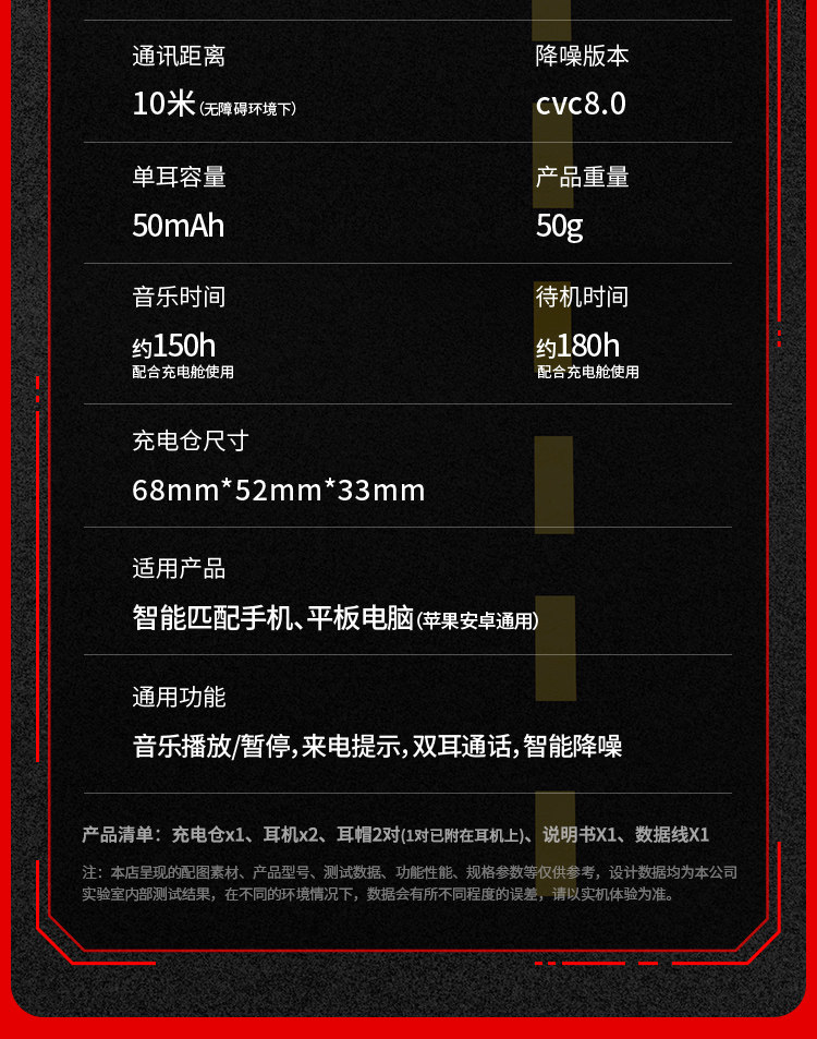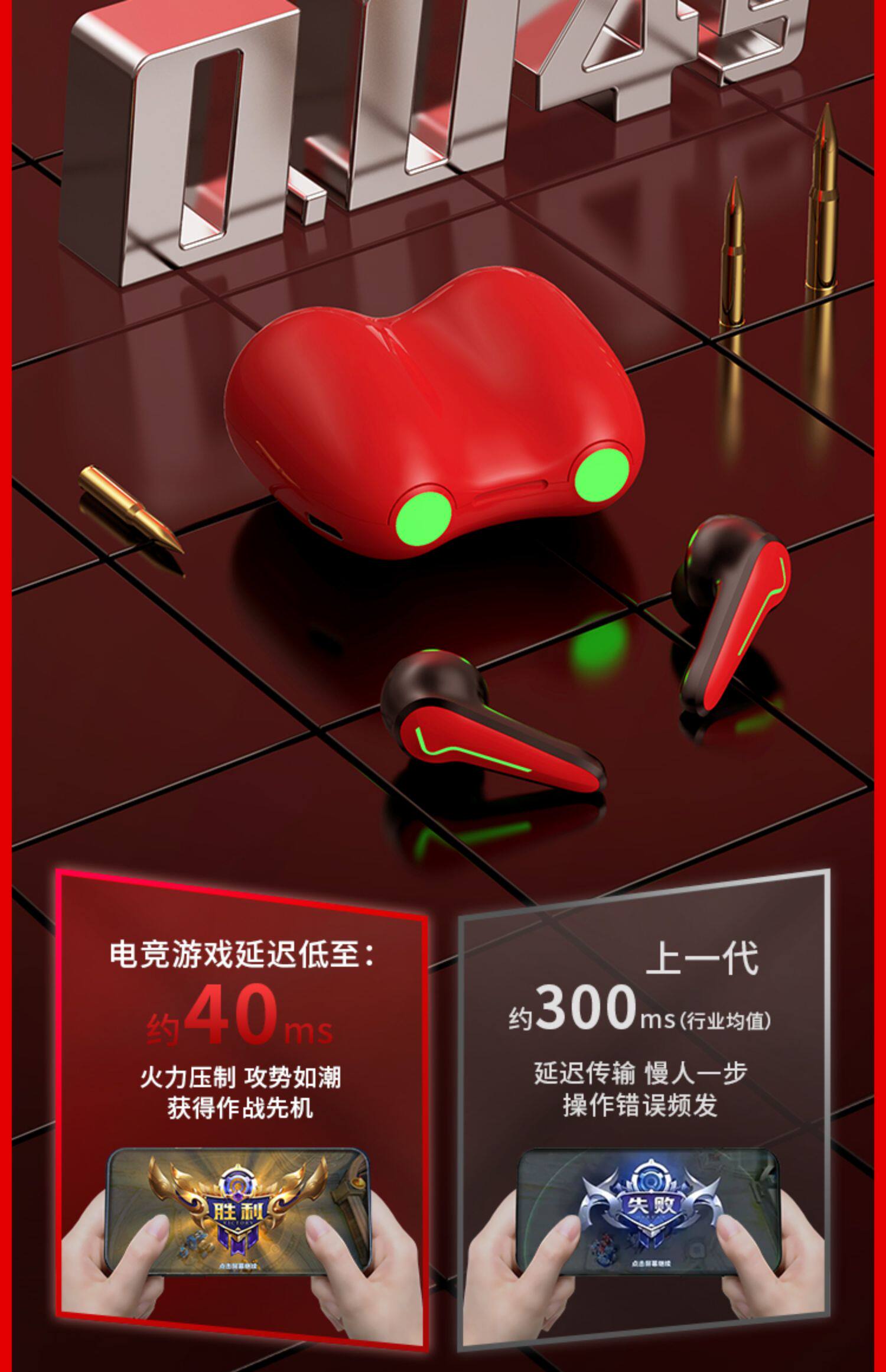 - [Флагманская версия+Flame Red] Импортированный высокоэффективный чип 5.2 ☆ 360D Стерео звуковые эффекты ☆ Нет чувствительного ультра-низкого задержки ☆ Fast Charge Type-C ☆ Срок службы батареи составляет около 210 часов
