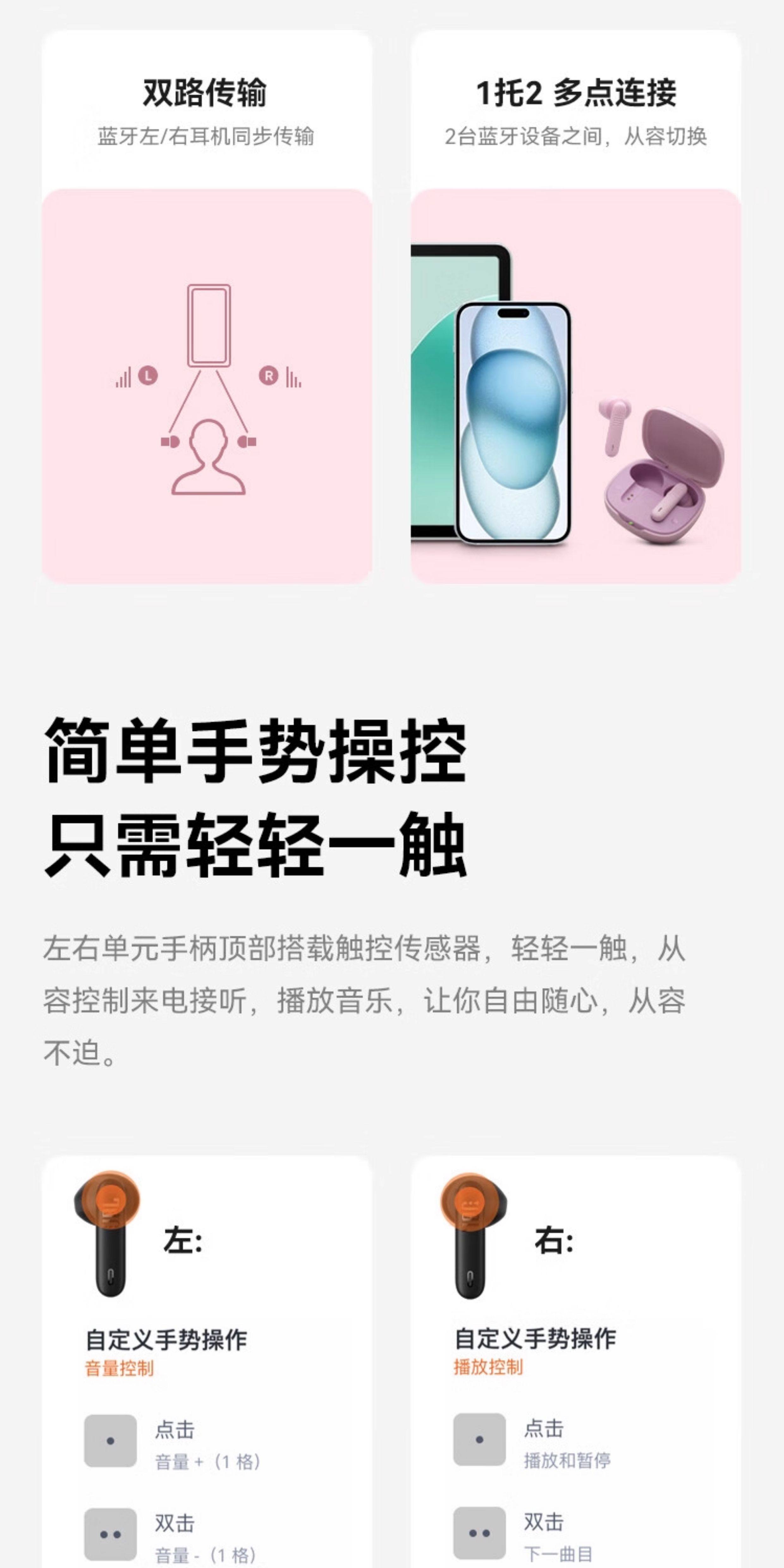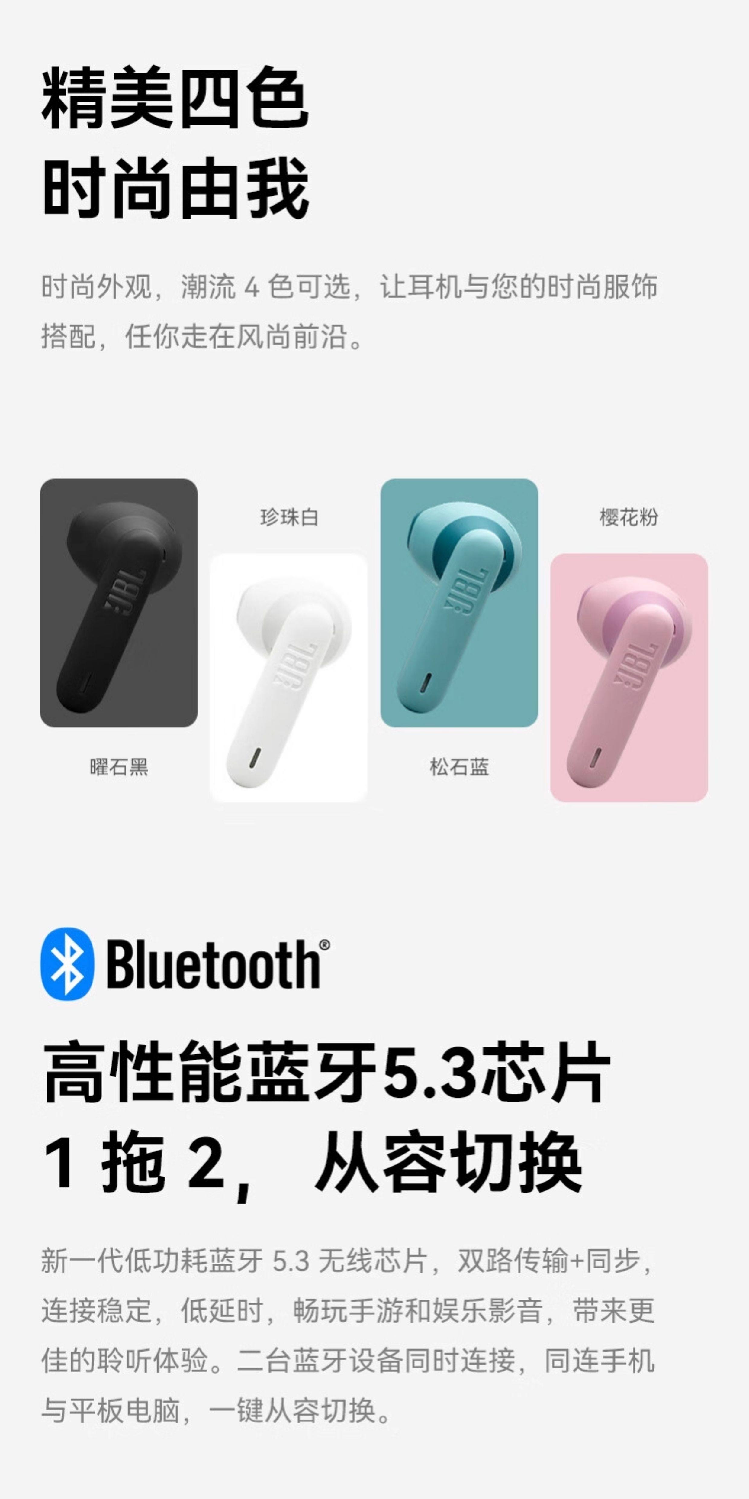 JBL Настоящая беспроводная Bluetooth-гарнитура WAVE300TWS с сабвуфером-вкладышем и двойным подключением к мобильному телефону