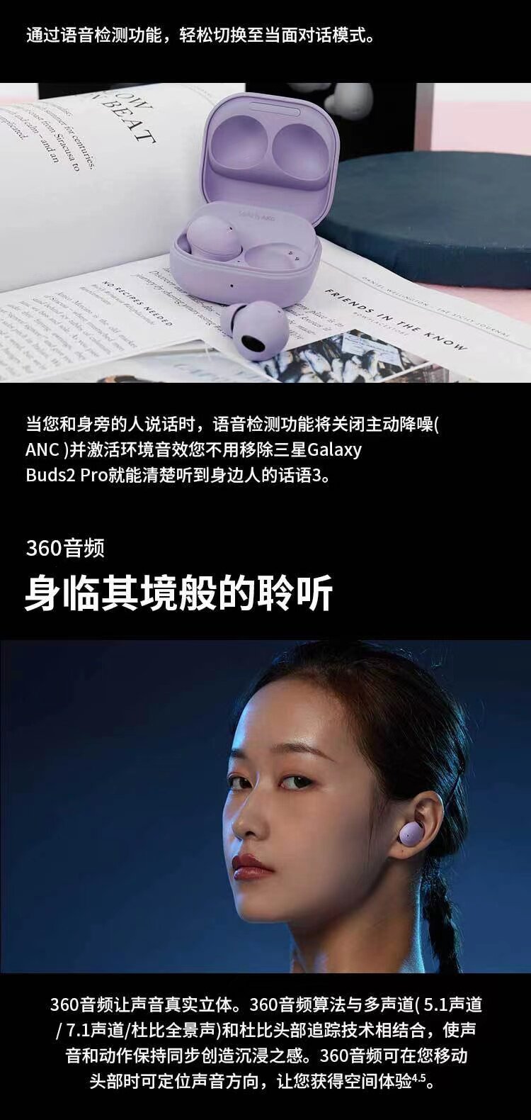 Samsung Galaxy Buds2pro Bluetooth -гарнитура Budspro Активно -шумопогничающие починки 2 второго поколения наушники подлинные