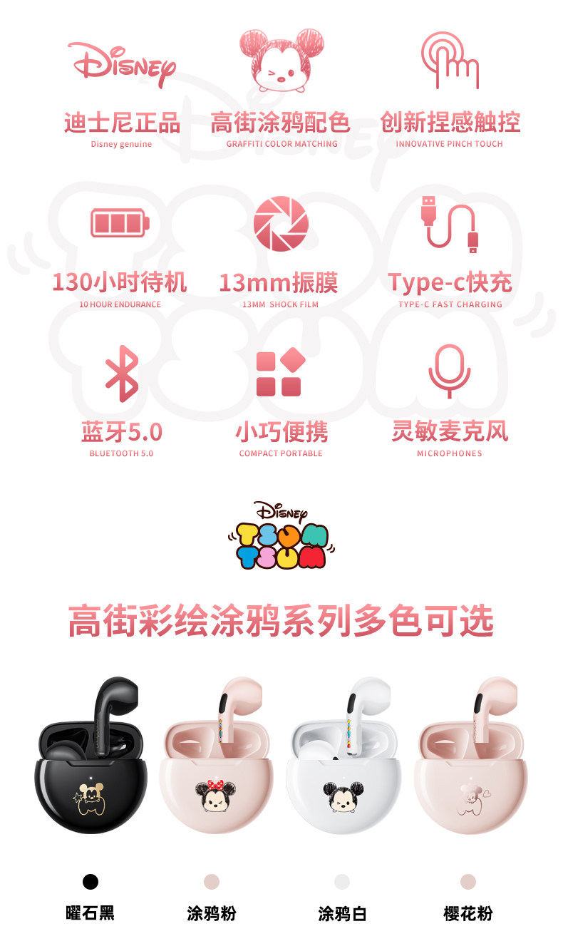 Дисней, милые наушники подходит для мужчин и женщин, Дисней Микки Маус, bluetooth, 2021 года