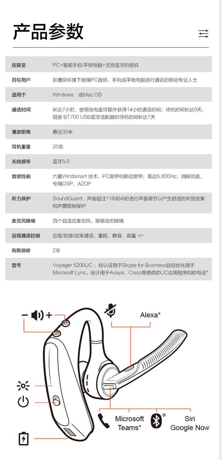 Plantronics 5200UC LEGEND50UC Наушная беспроводная Bluetooth-гарнитура с шумоподавлением, одноканальная гарнитура для вызова