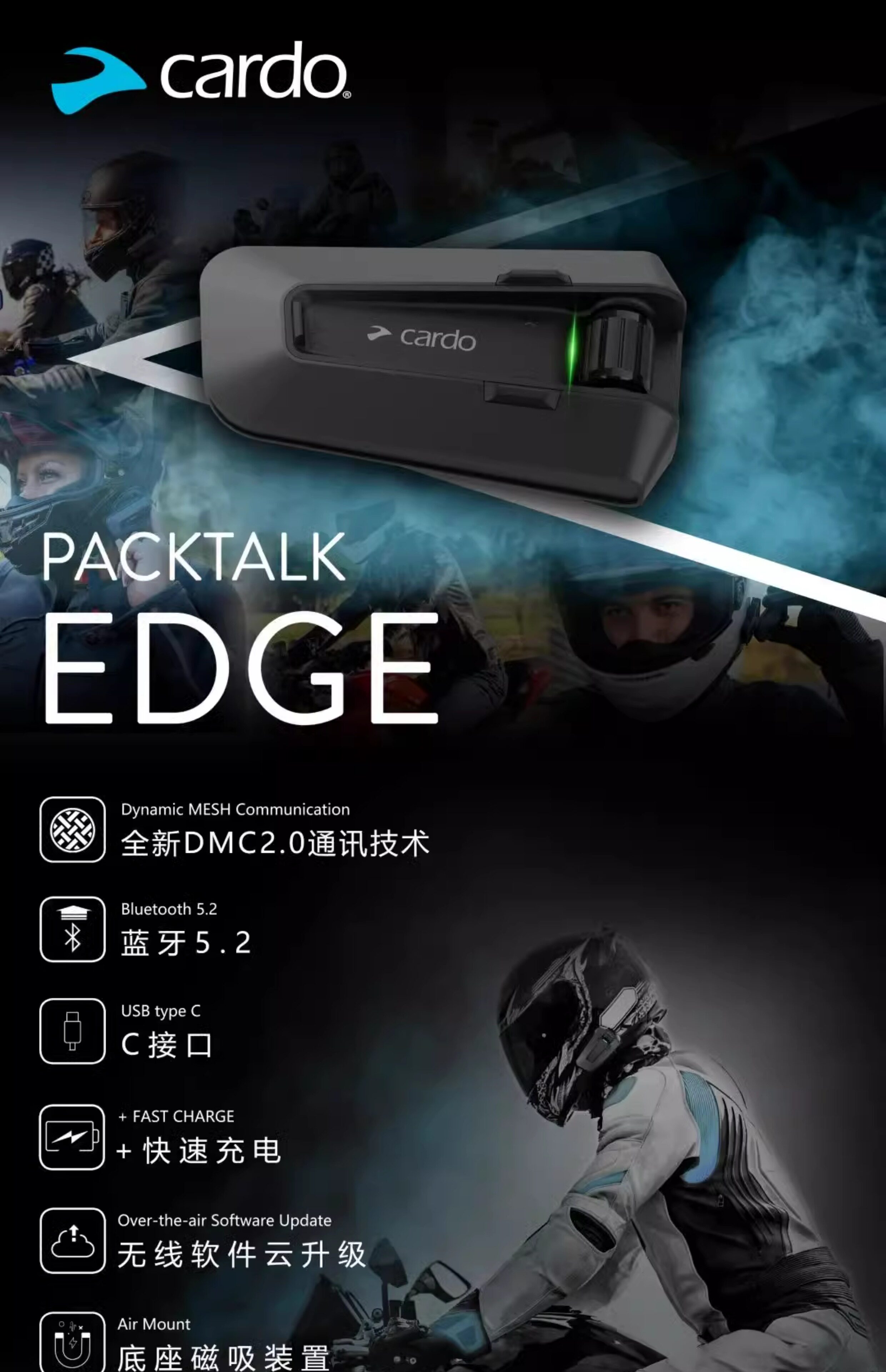 Bluetooth-гарнитура Cardo Packtalk Edge для мотоциклетного шлема Pro Magnetic, СПЕЦИАЛЬНАЯ ВЕРСИЯ