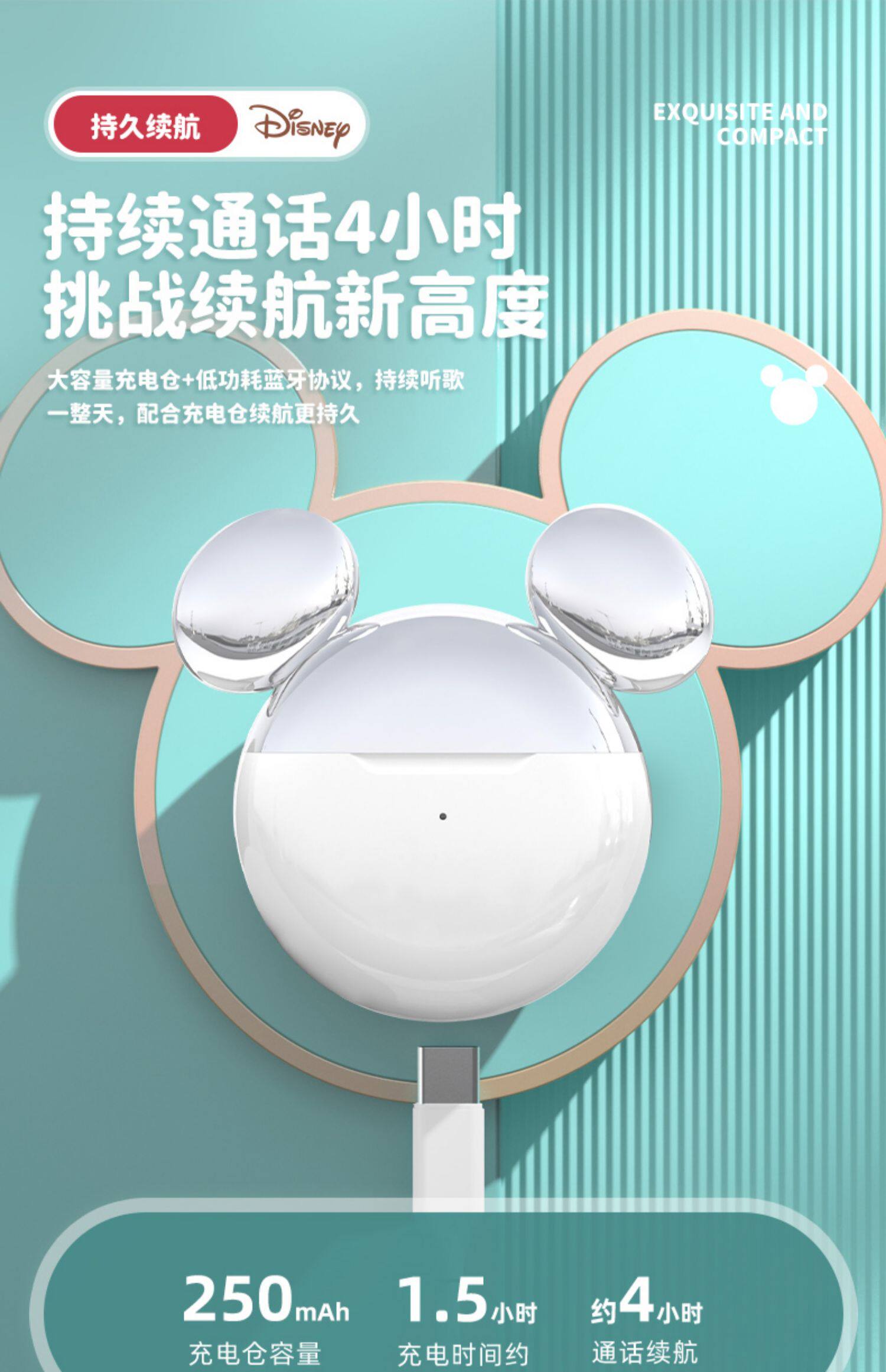 - [Disney Space Mickey Bai] ★ Открыть крышку+13 -миллиметровый динамик+резервное время автономной работы 12H