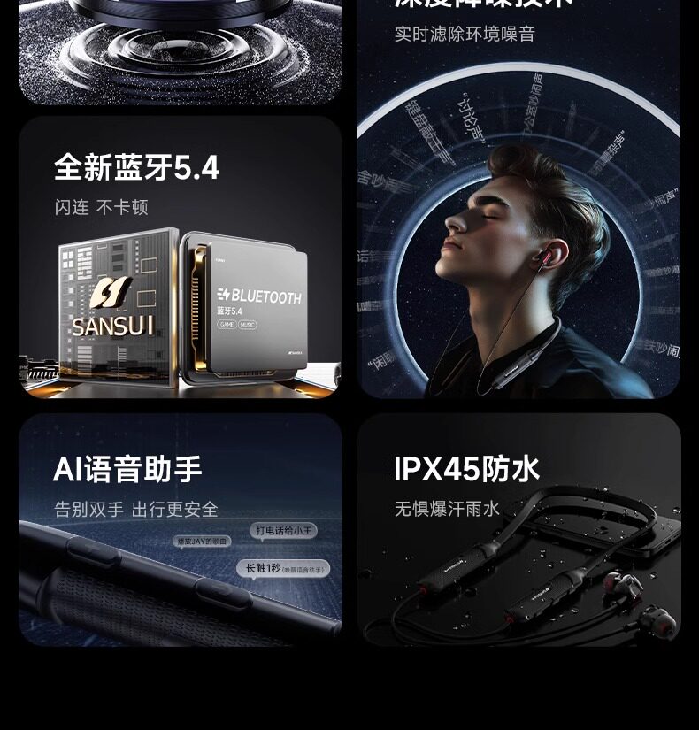 Shanshui True Wireless Bluetooth Наушники шеи попола