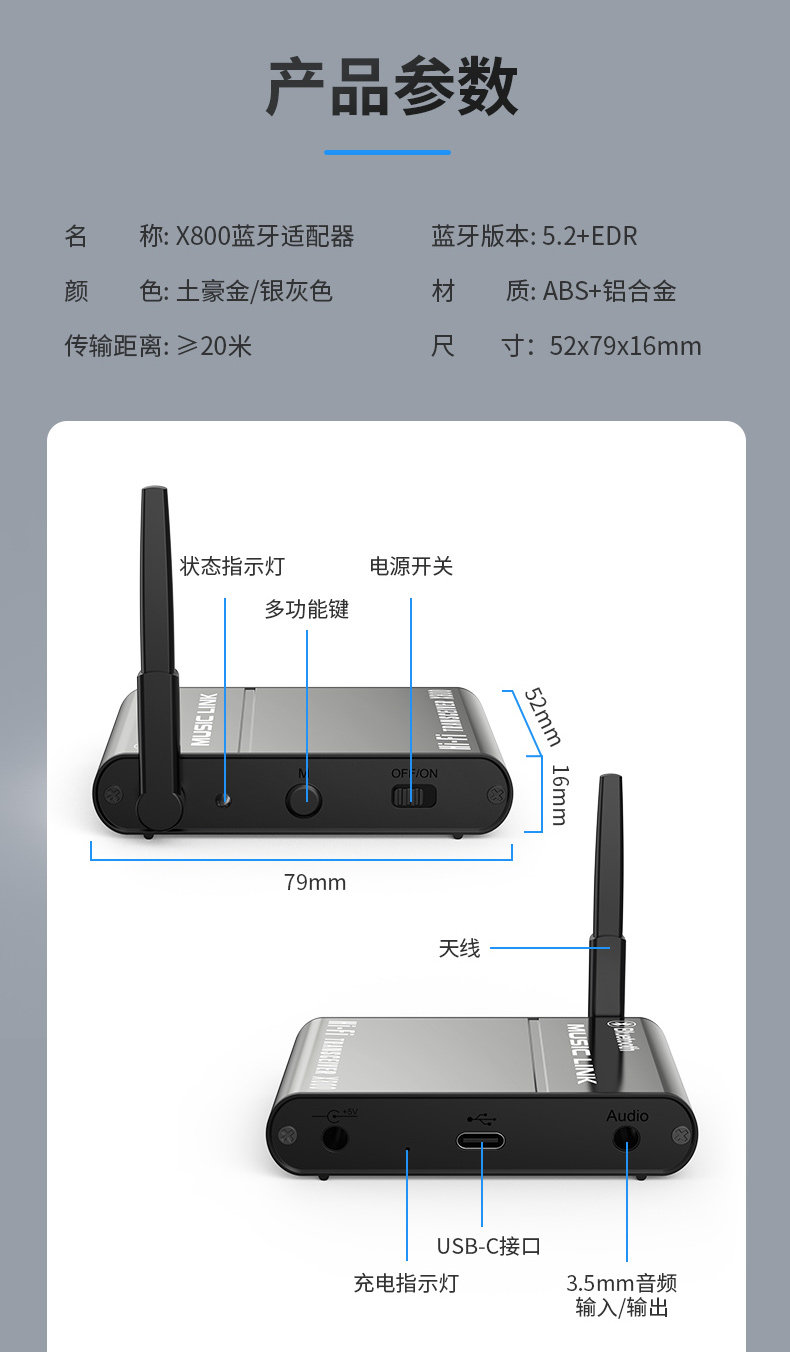 | Цвет: | X800 Bluetooth-аудиоприемник/передатчик-золотой, Аудиоприемник/передатчик X800 Bluetooth-серый |