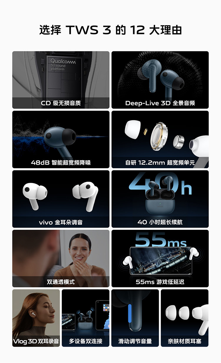 [Беспроцентный выпуск 3] vivo TWS 3 True Wireless с шумоподавлением Bluetooth Игровые спортивные спортивные наушники vivo tws2