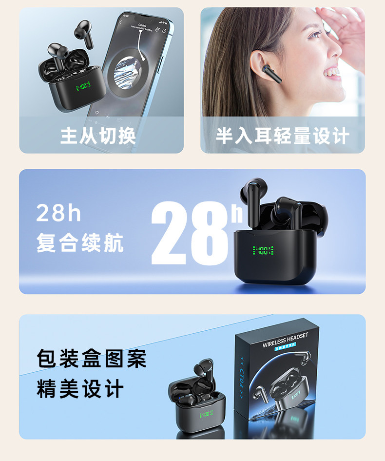 - Версия события APTX [jingye hei] Импортированный Bluetooth 5.3 ★ ENC вызывает шумоподавление ★ Эффект объемного звучания APTX ★ Цифровой объем электричества ★ Game 0 задержка
