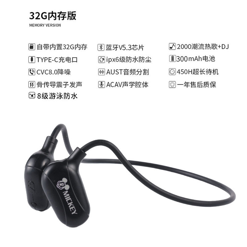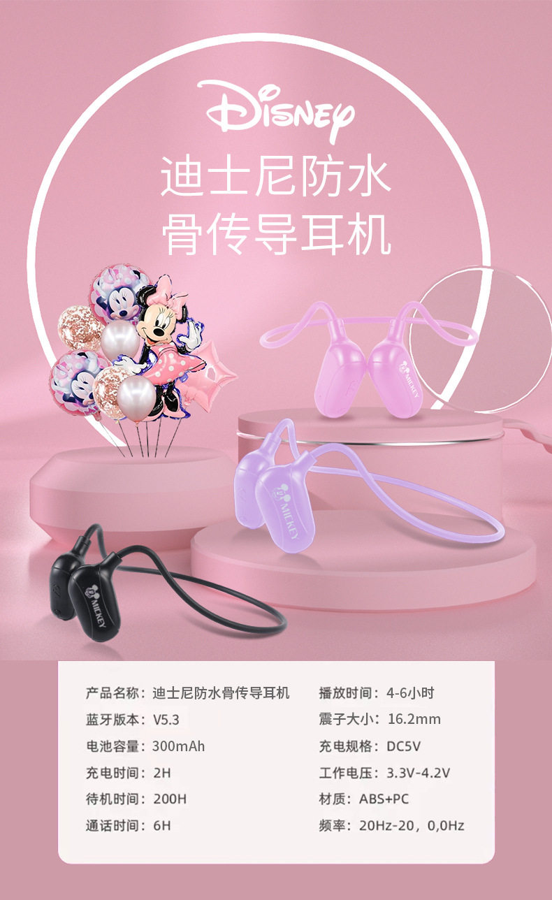 Bluetooth-гарнитура для плавания с костной проводимостью Disney 5.3, вкладыши со встроенной памятью, водонепроницаемая LPx8, зарядка TYPE one C