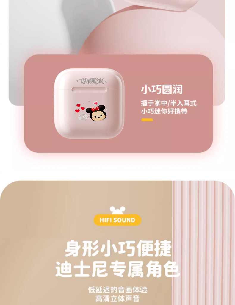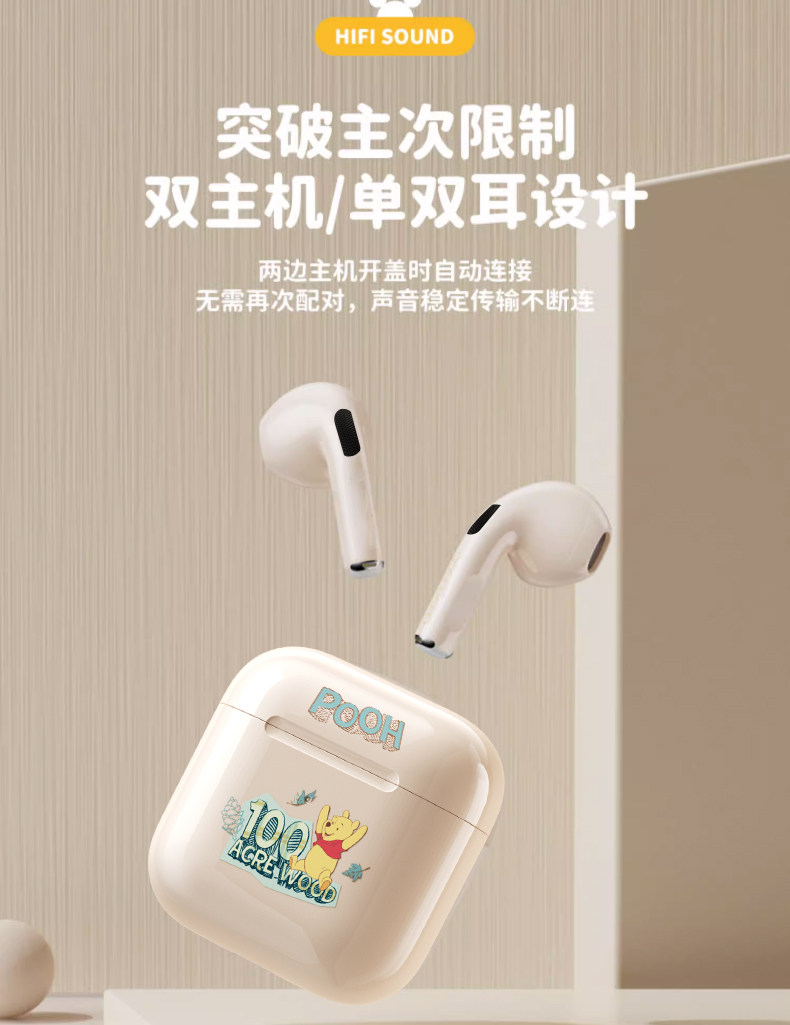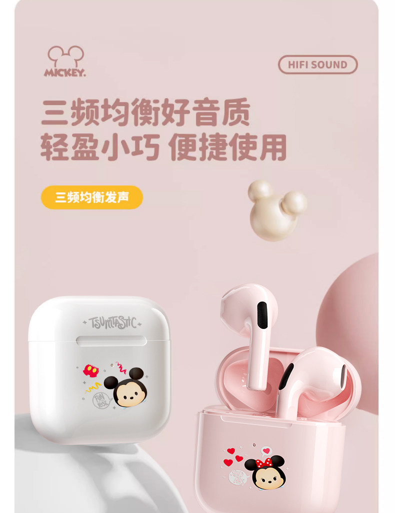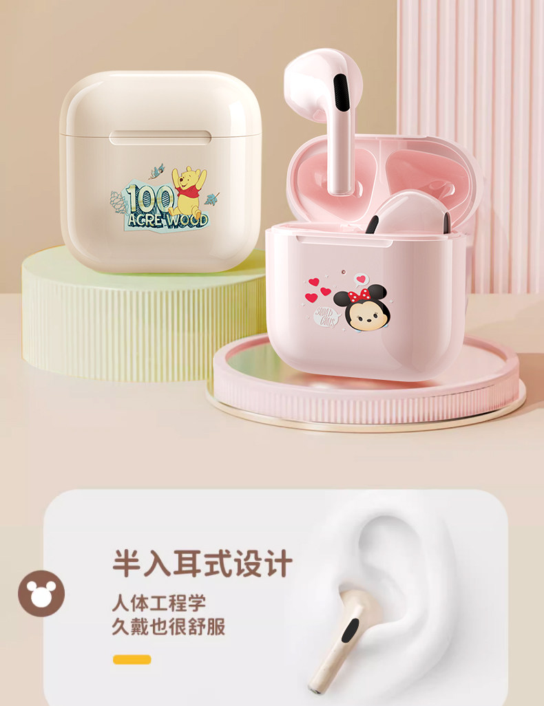Дисней подлинный беспроводной гарнитуру Bluetooth HiFi HD HD -снижение шумоподавления с двойным беспроводным ухом