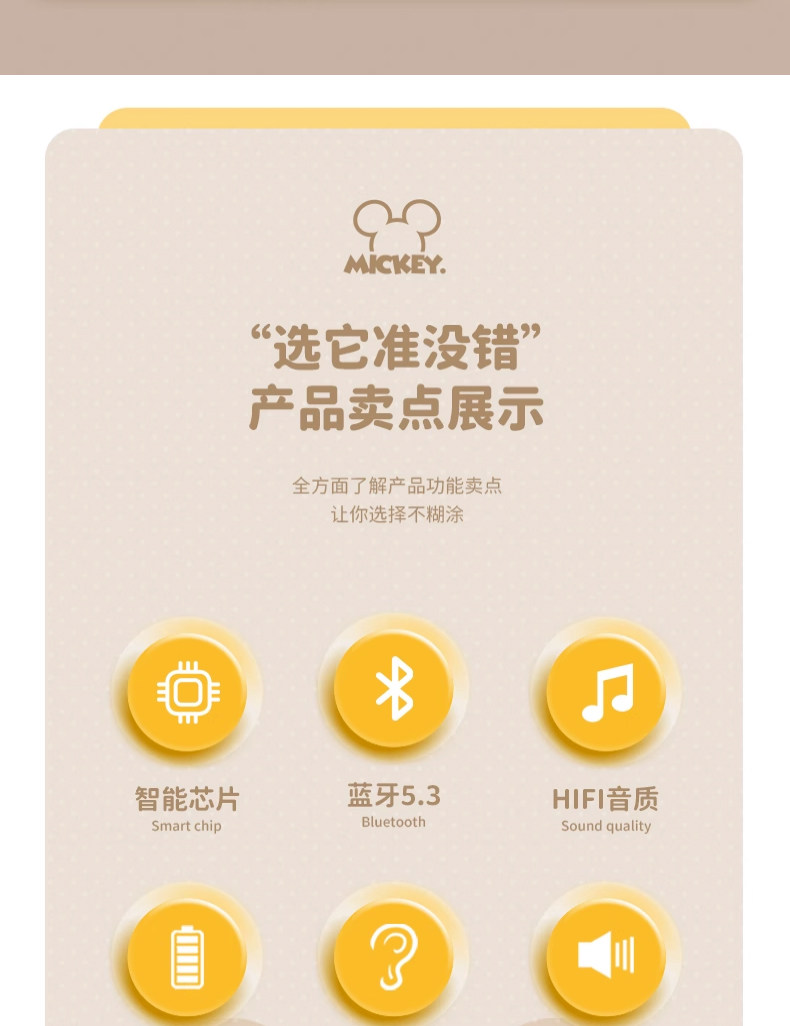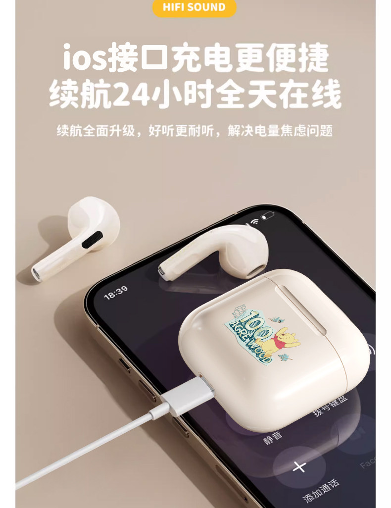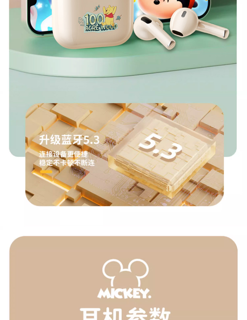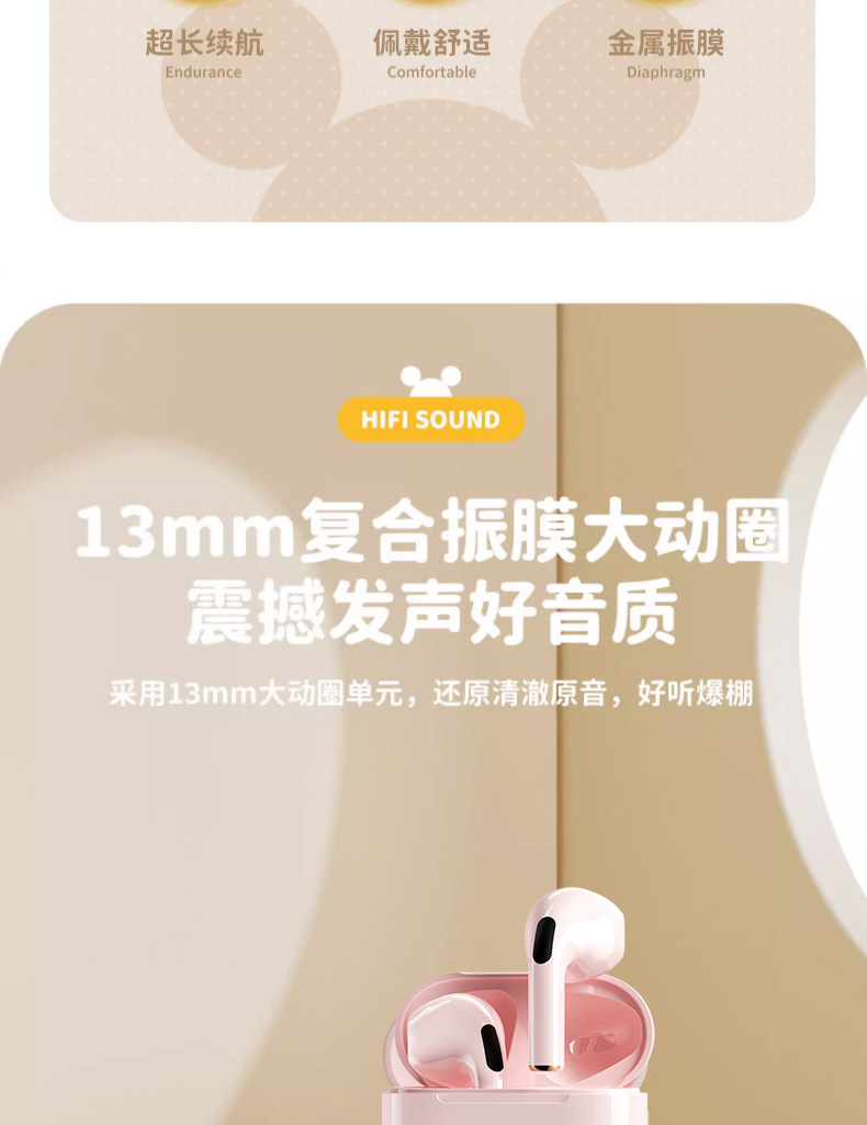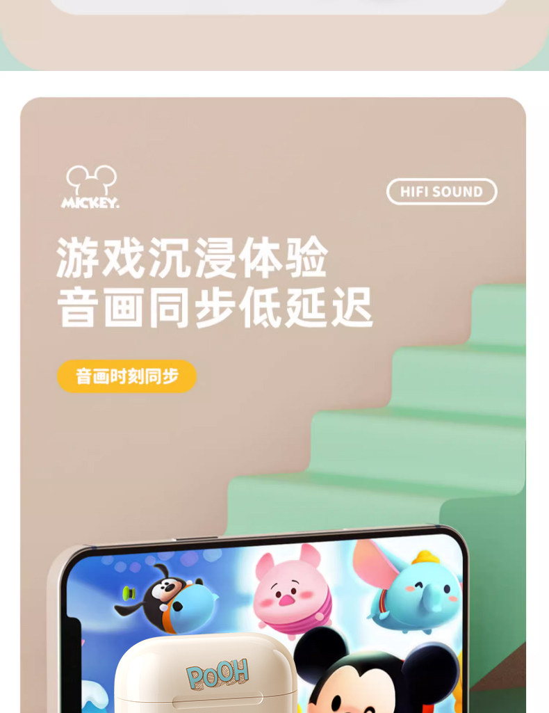 Дисней подлинный беспроводной гарнитуру Bluetooth HiFi HD HD -снижение шумоподавления с двойным беспроводным ухом