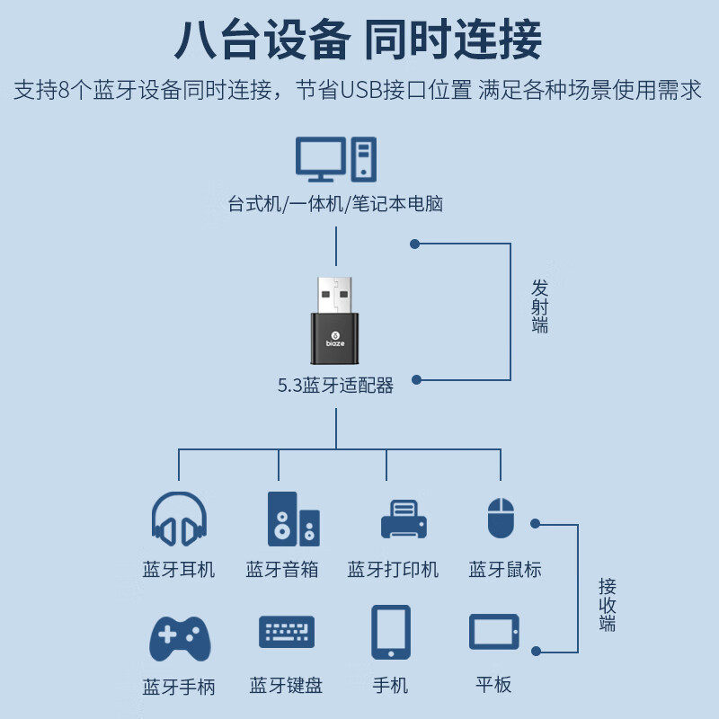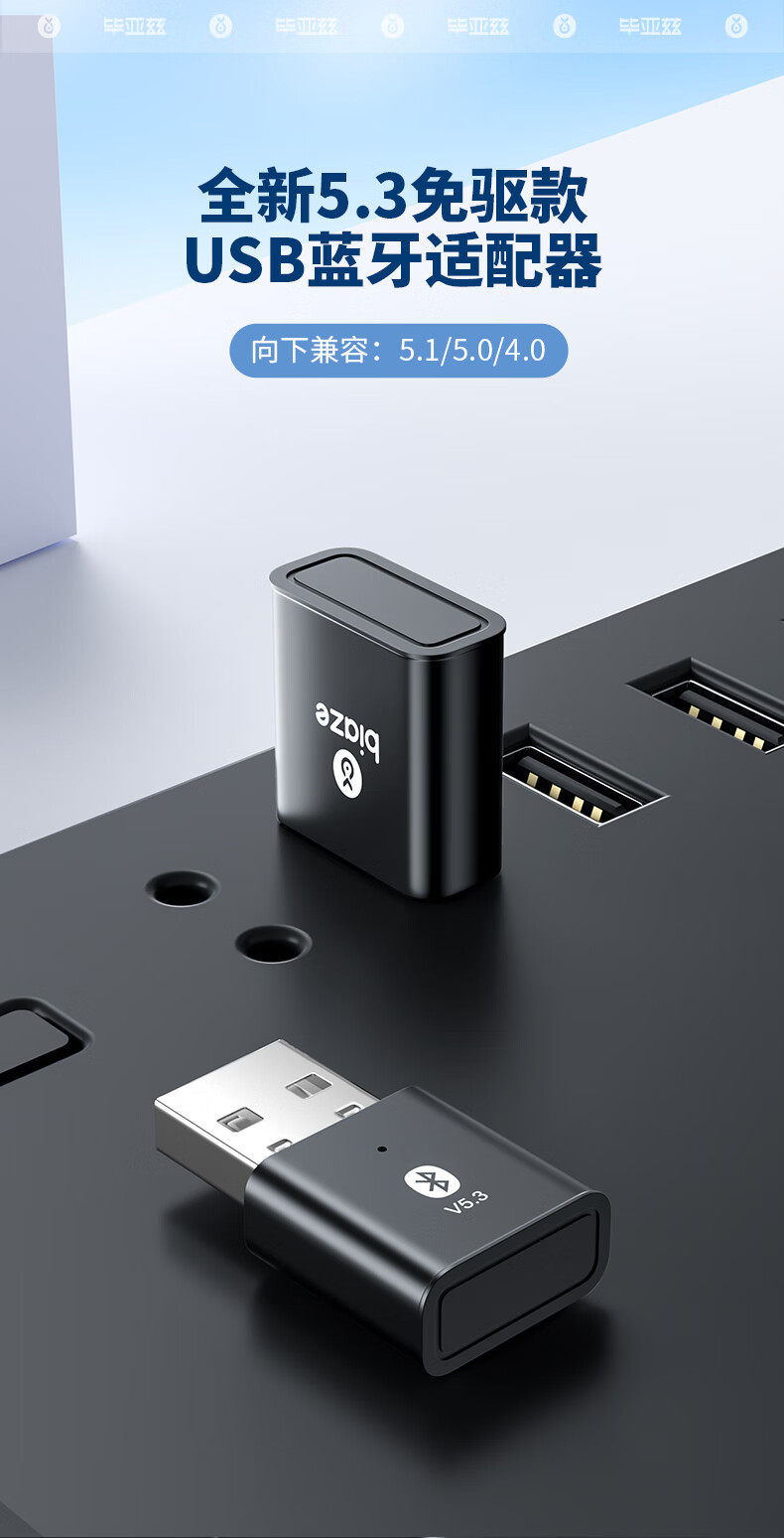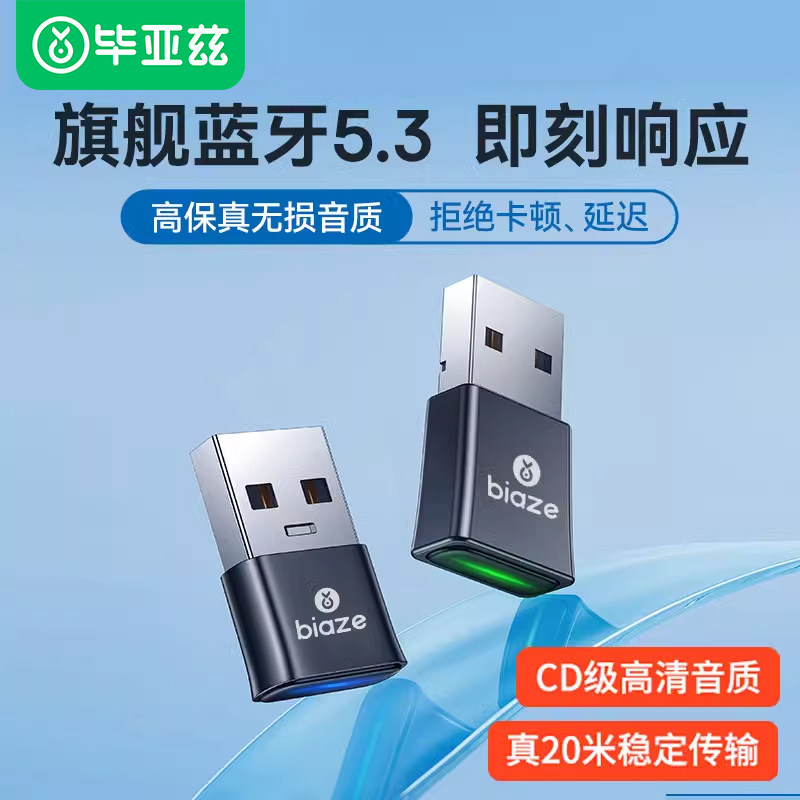 Biyaz Bluetooth Adapter Desktop Computer Presitiver Передача USB -модуль 5.3 Подключение беспроводные наушники
