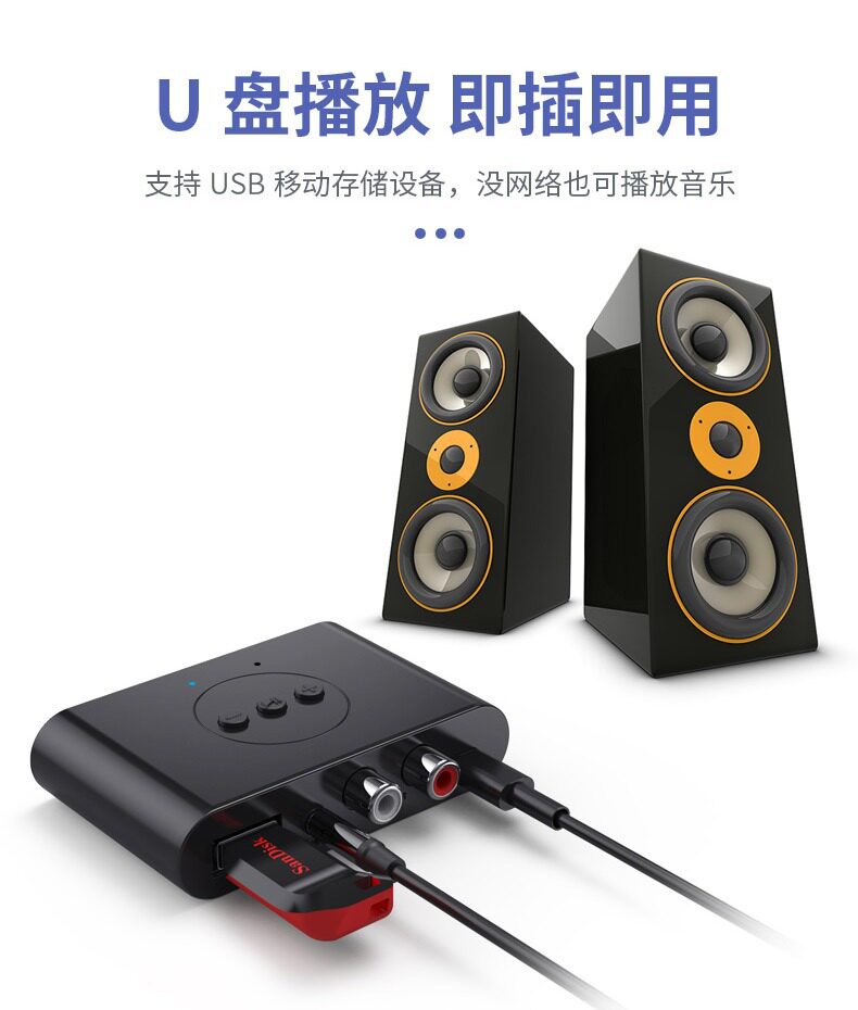 5.2RCA Bluetooth -приемник 3.5AUX CAR Bluetooth stod USB Bluetooth Адаптер поддерживает усилитель питания диска U Disk