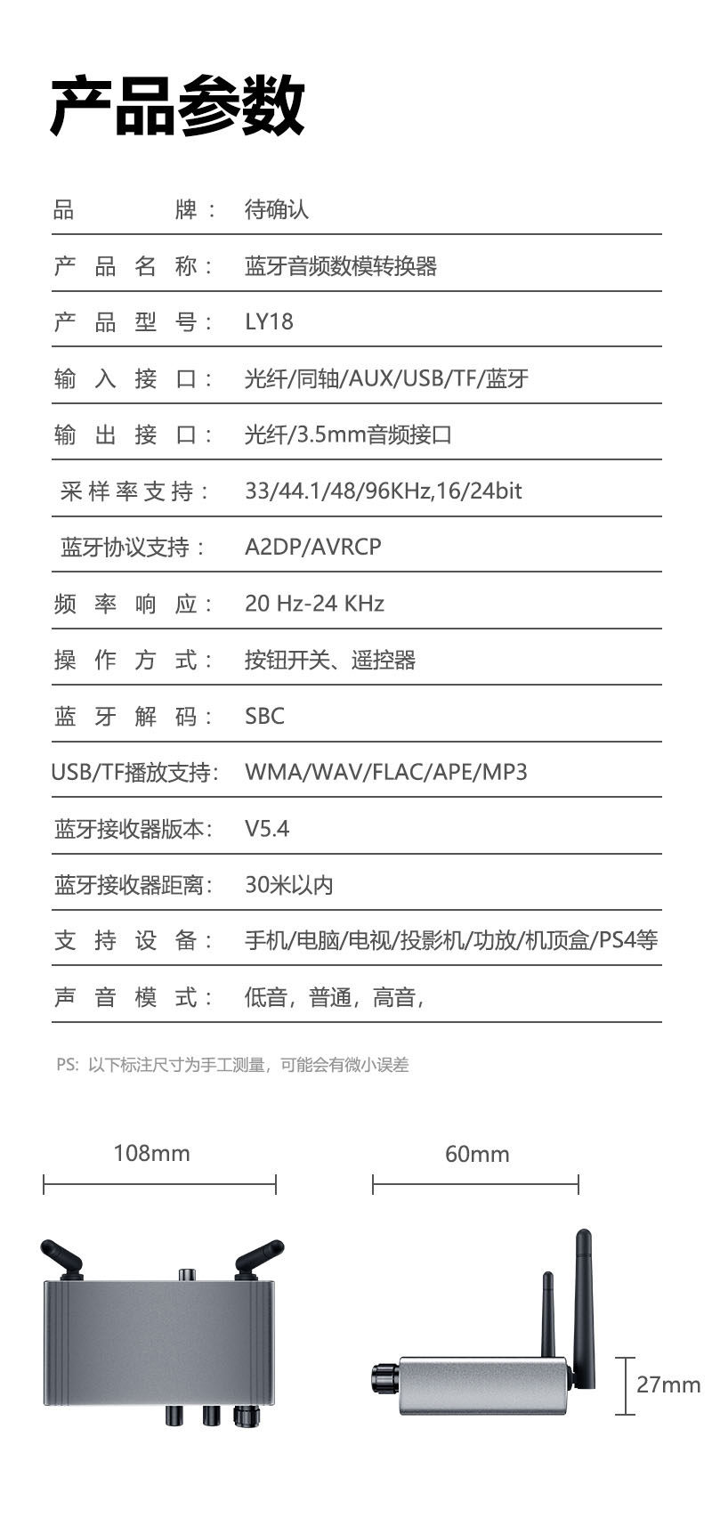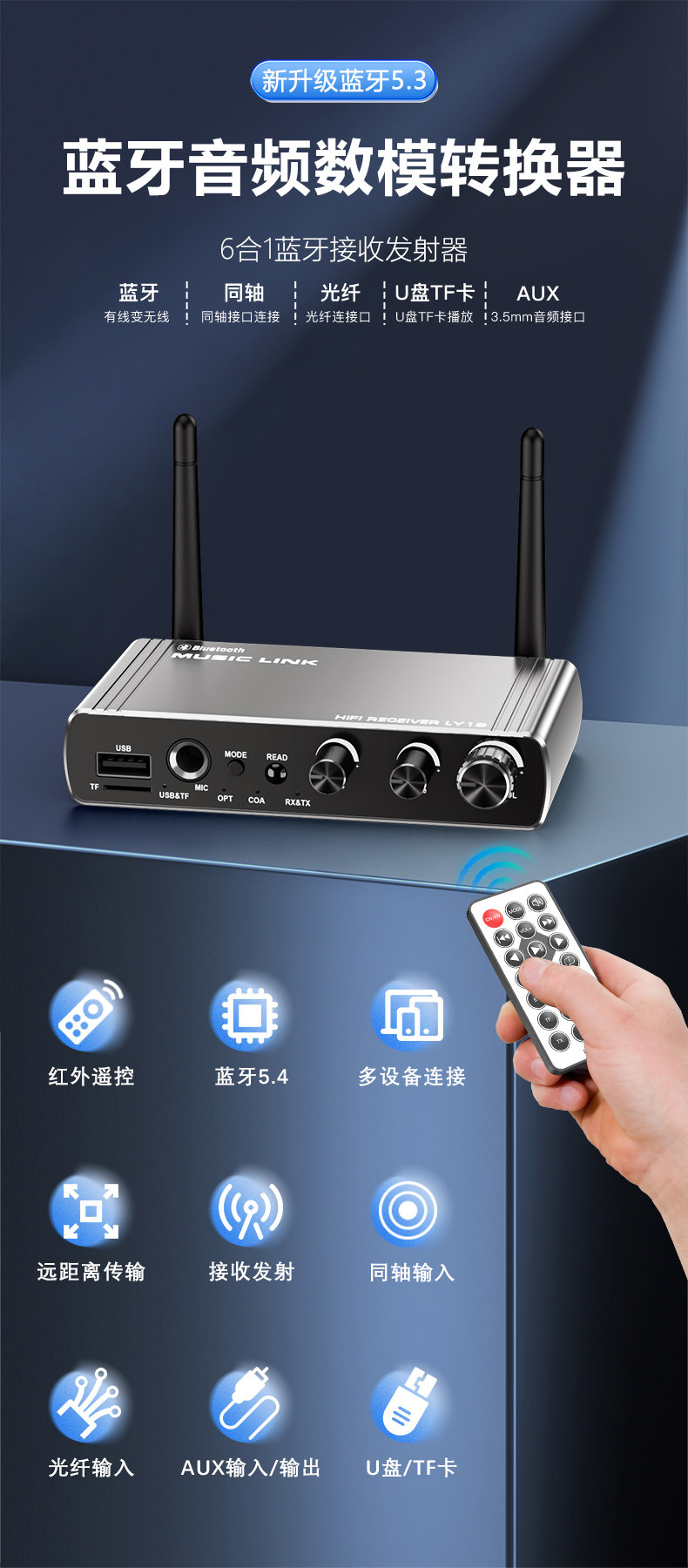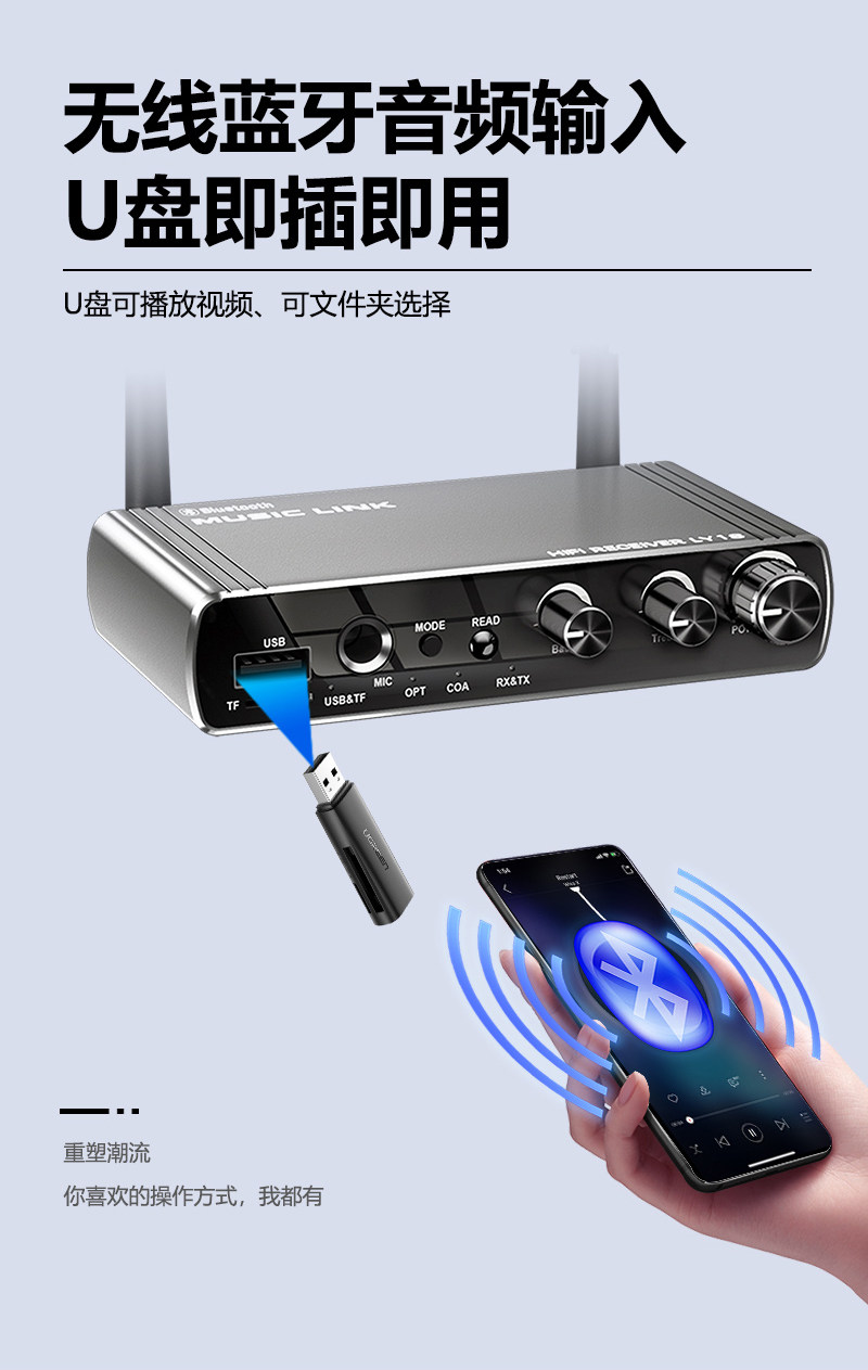 Bluetooth-адаптер 5,4 Bluetooth-приемник караоке-аудио, выделенный U-диск/TF-карта, модуль передатчика звука без потерь