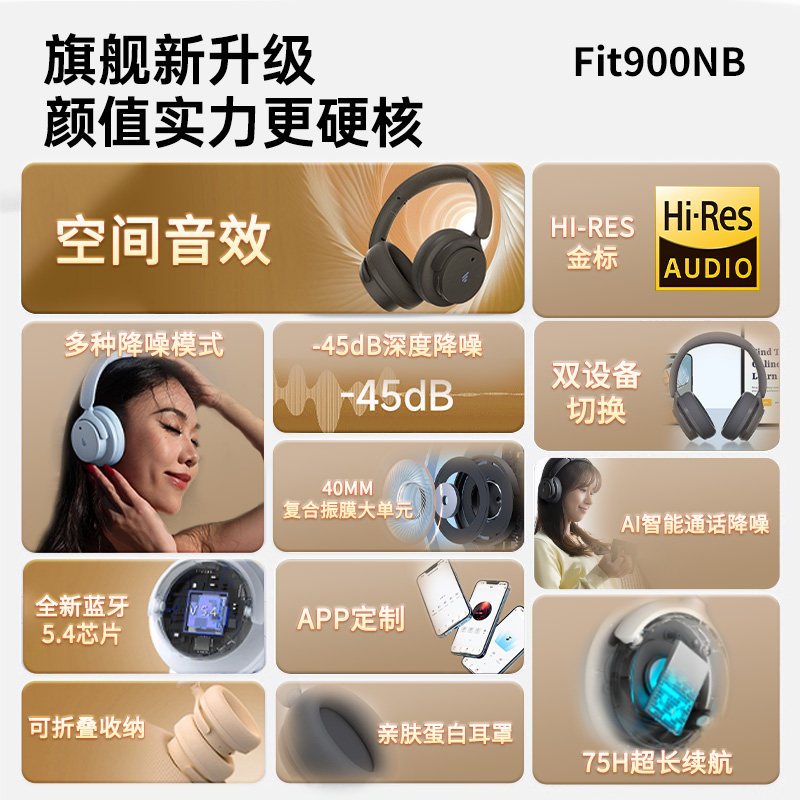 Наушники Edifier Fit900NB с активным шумоподавлением поддерживают двойное подключение к мобильному телефону и обеспечивают 75 часов автономной работы.