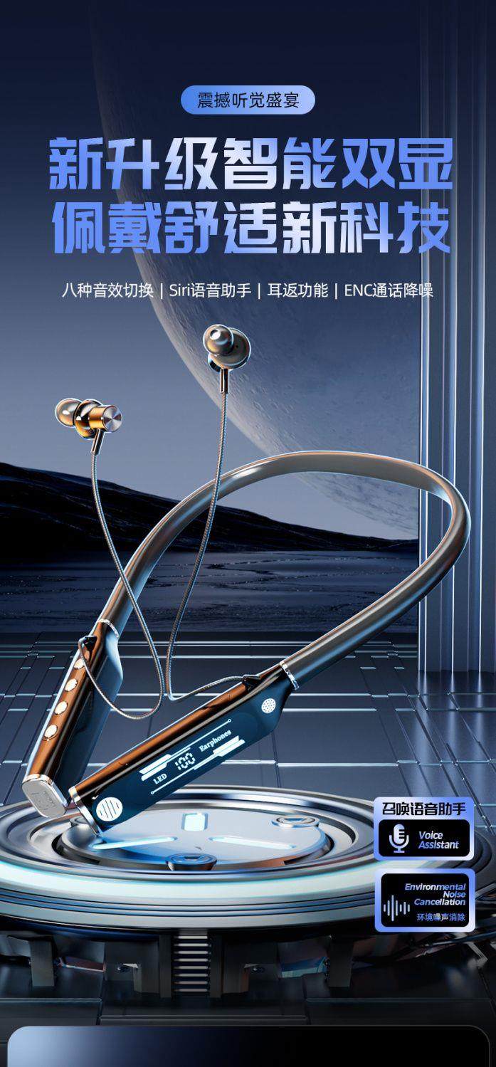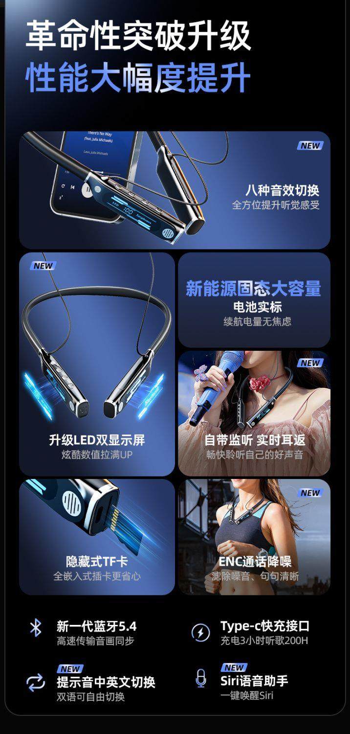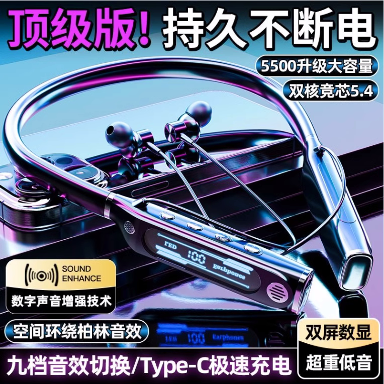 Беспроводная применима Berlin Voice Bluetooth-гарнитура беспроводная шея Halter 2025 Новый спортивный сверхпрочный срок службы батареи Vivo
