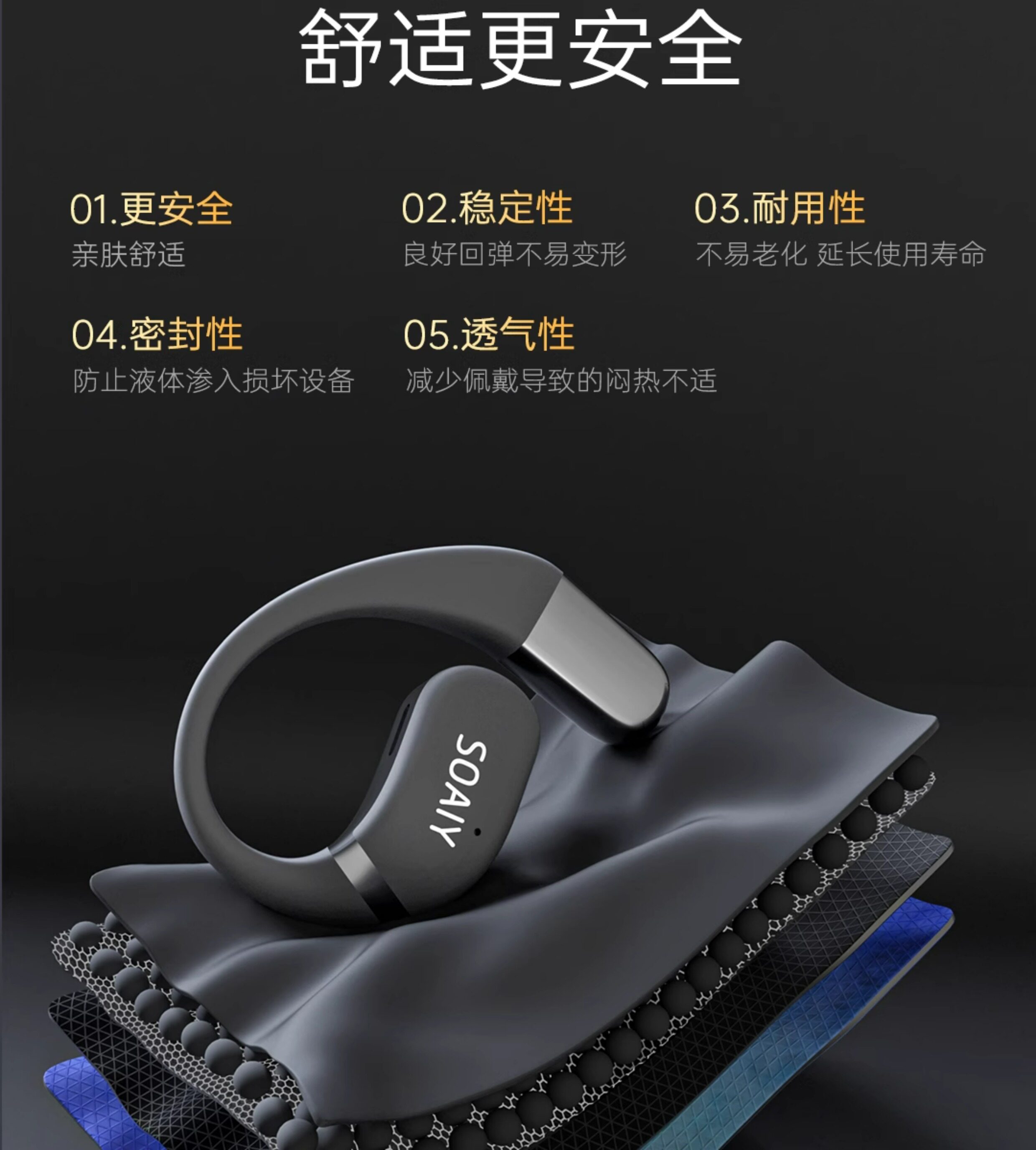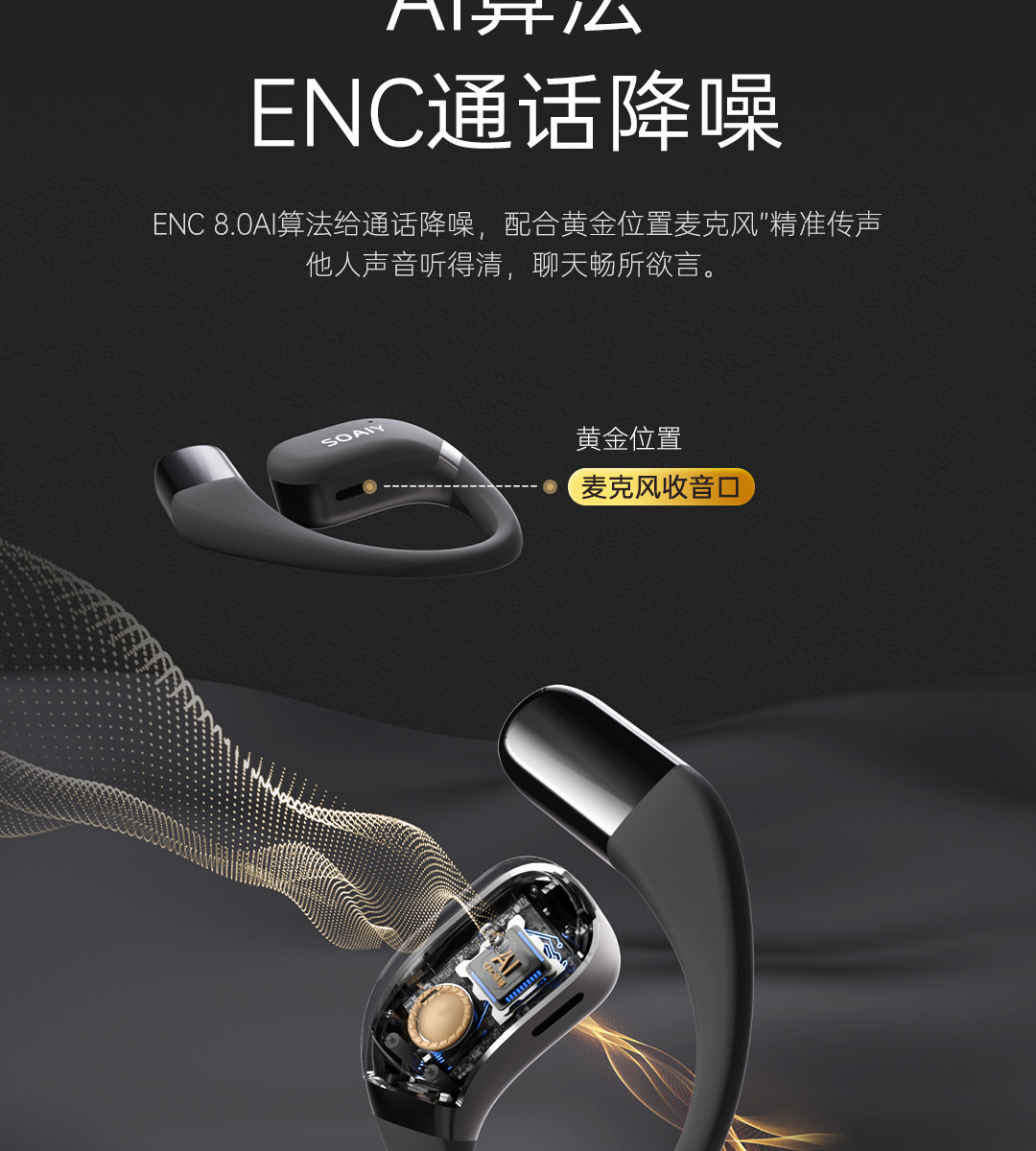 索爱 Наушная Bluetooth-гарнитура GD35, беспроводная воздушная костная проводимость, открытое движение, не выпадает и не входит в ухо, новая модель 2025 года