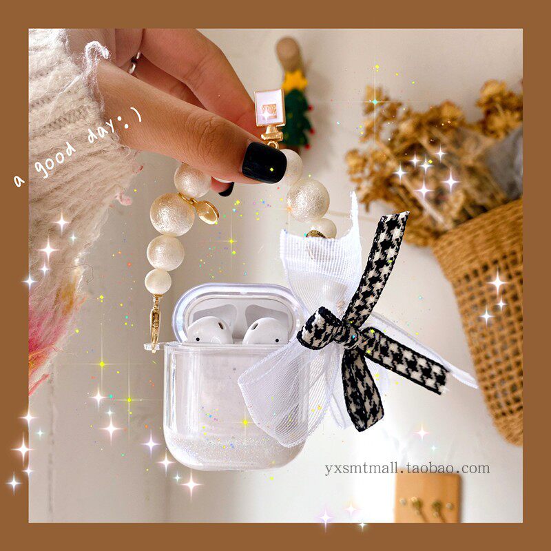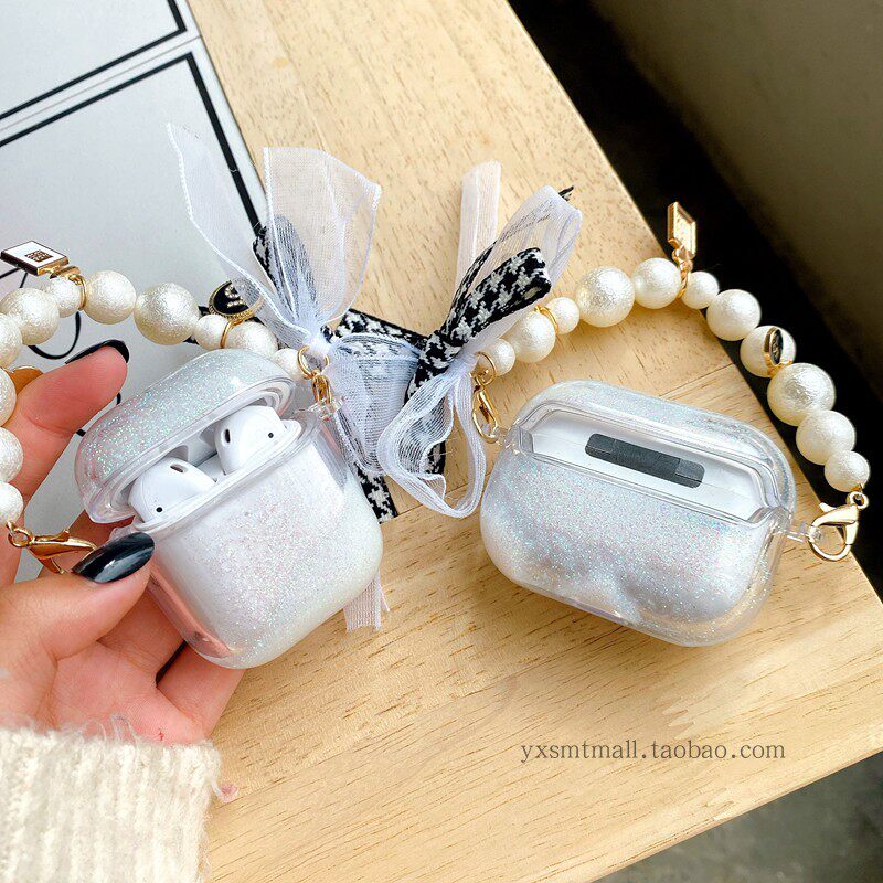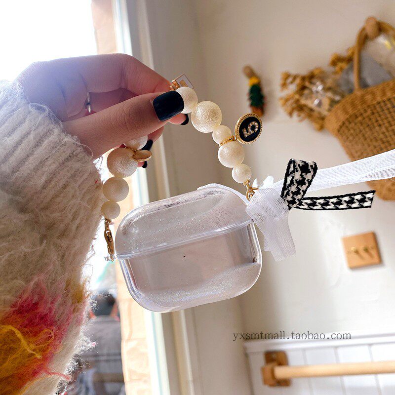 Apple, брендовый креативный белый прозрачный защитный чехол, наушники, браслет из жемчуга, подвеска, легкий роскошный стиль, bluetooth