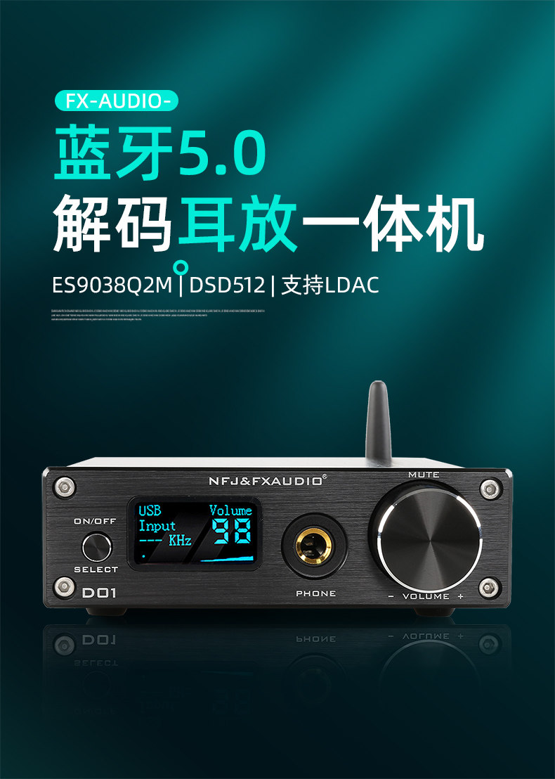 Fei Xiang D01 Bluetooth Audio Decoder ES9038Q2M Лихорадка DAC DSD512 Декодирование усилителя All -In -One Machine