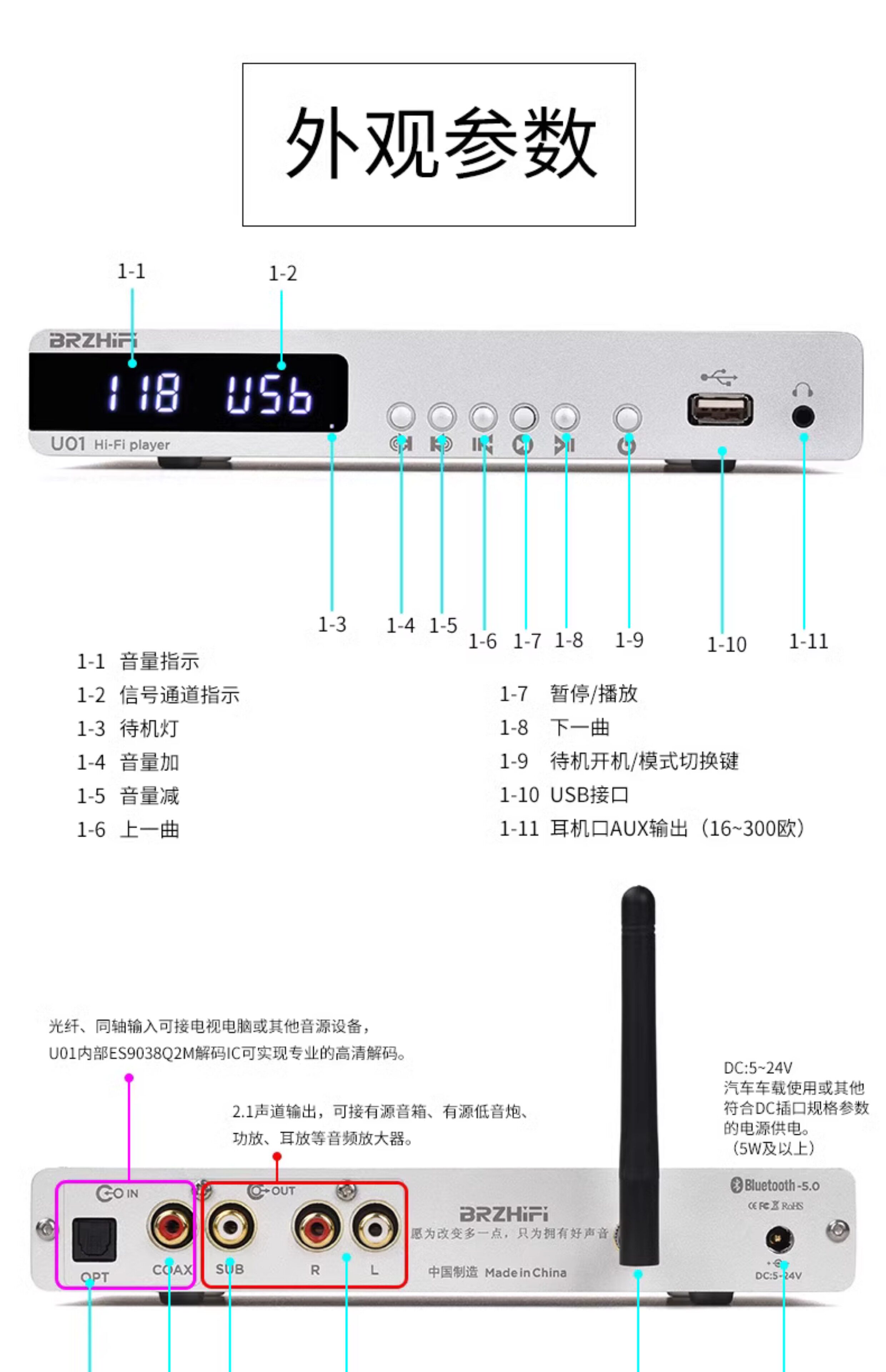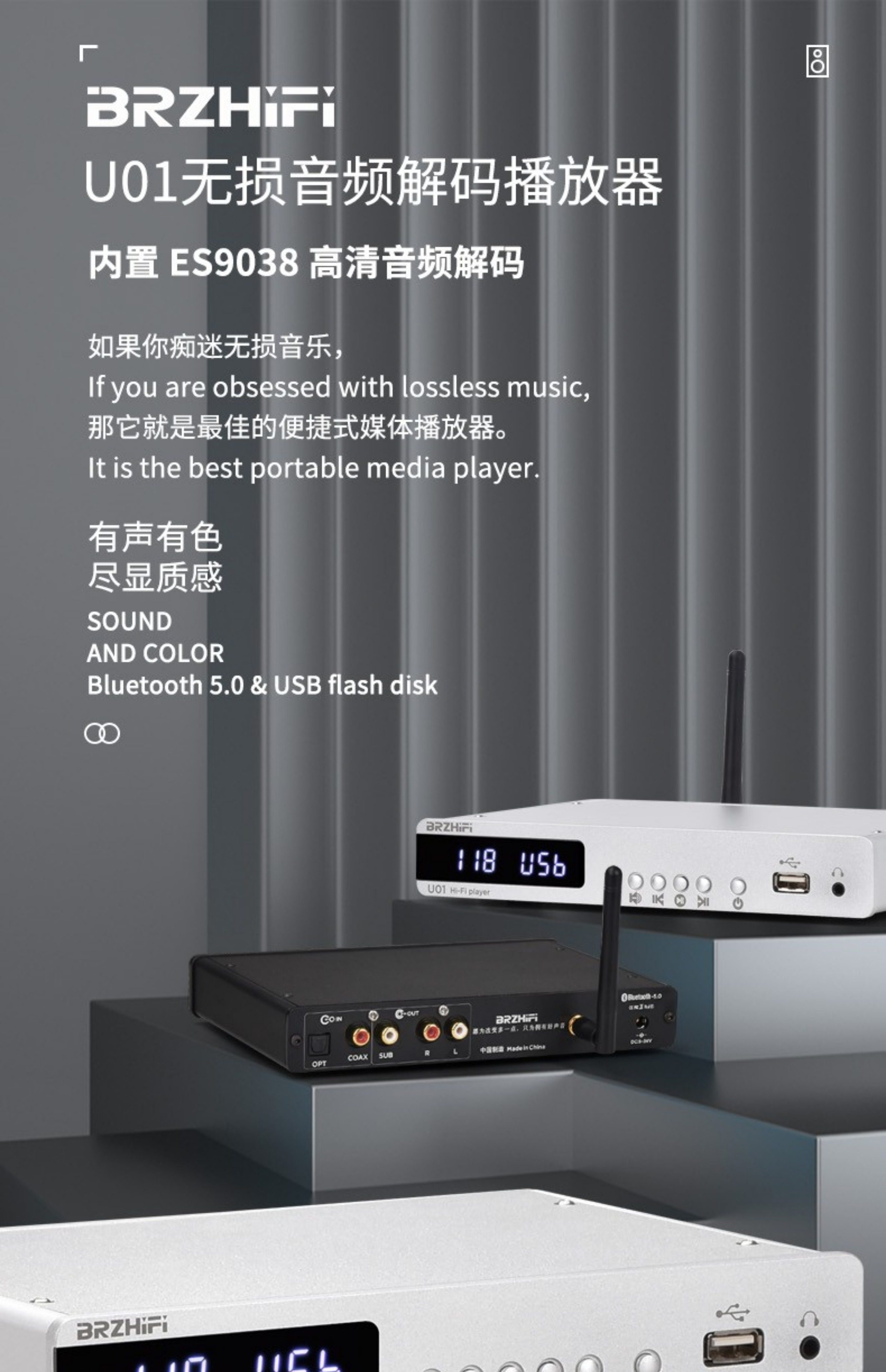 BRZHIFI U01 без искажений музыки U Disk Ape Player ES9038 Декодер цифровой поворотный стол Bluetooth 5.0