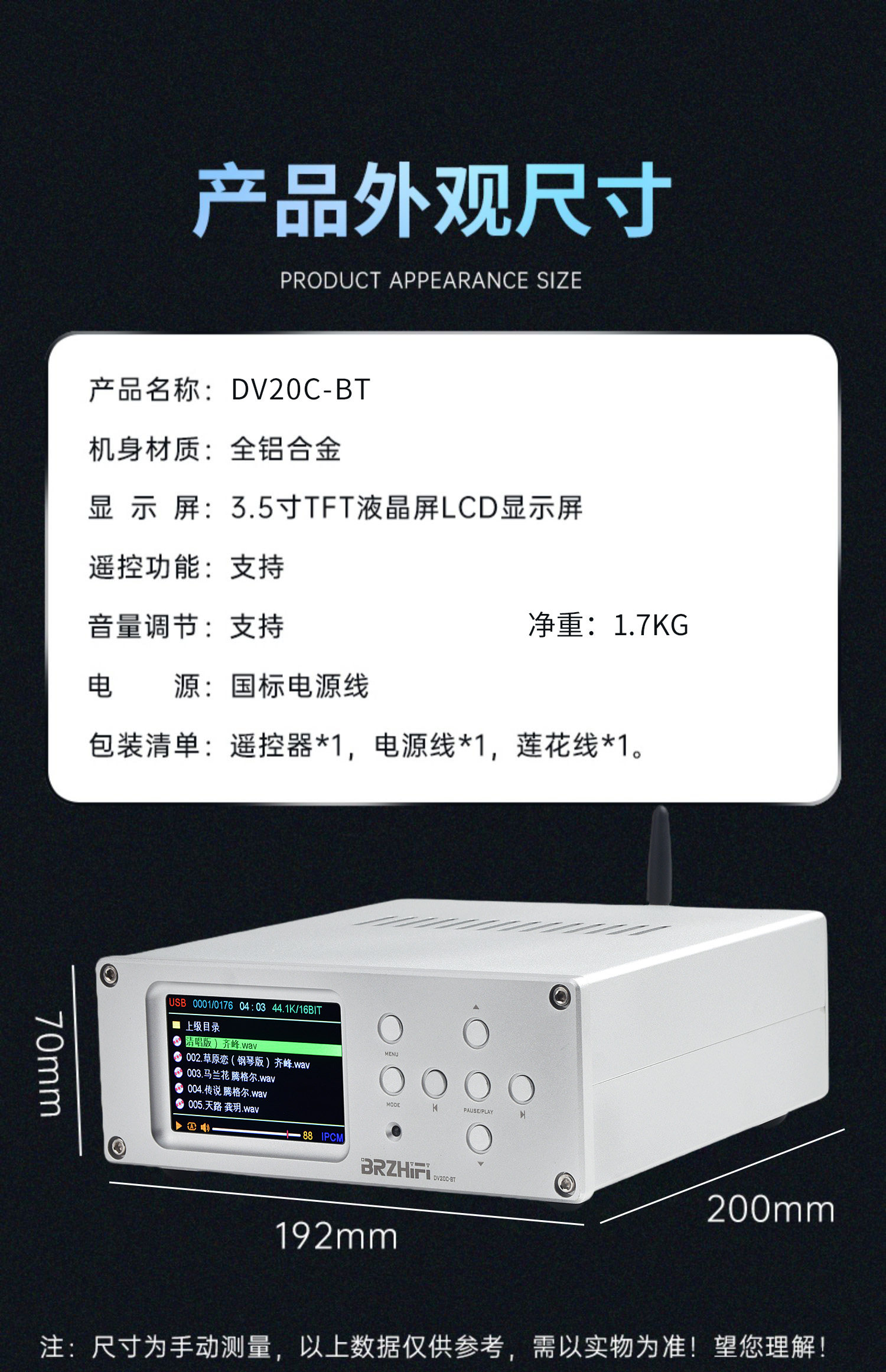 | Цвет: | DV20C-Bt Black Band Bluetooth версия, DV20C-BT Silver Band Bluetooth версия, DV20C-BT Black Bluetooth версия с алюминиевой панелью дистанционное управление дистанционным управлением, DV20C-BT Silver Bluetooth версия с алюминиевой панелью дистанционное управление дистанционным управлением |