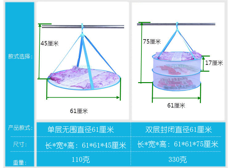 1.[晒毛衣、T恤可以选直径61圆形有围或者直径61封闭型;]