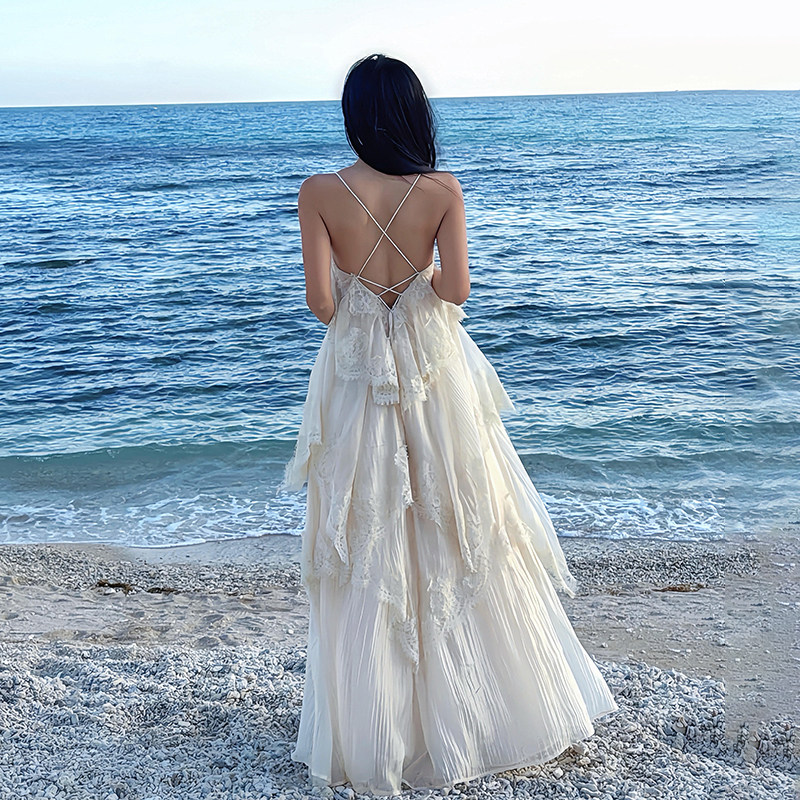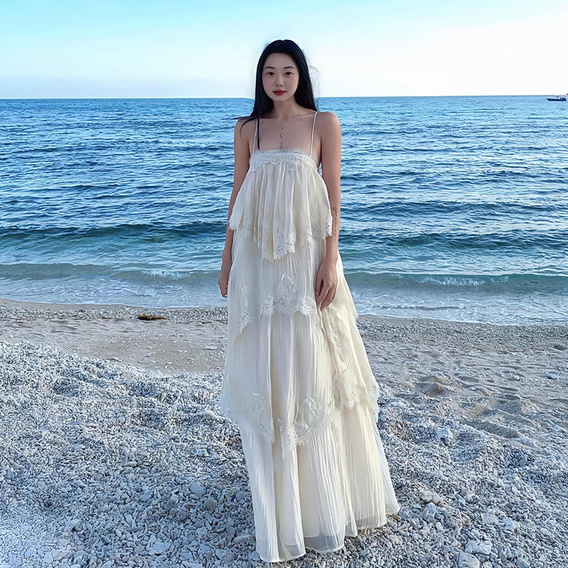 Кружевное летнее платье, длинная юбка, французский стиль