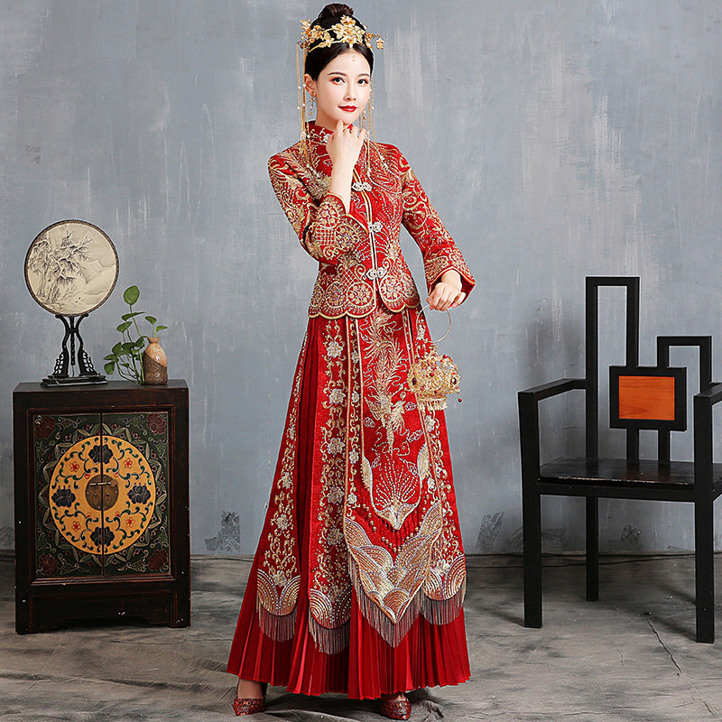 TikTok, традиционный свадебный наряд Сюхэ, свадебное платье для невесты, дракон и феникс, коллекция 2021