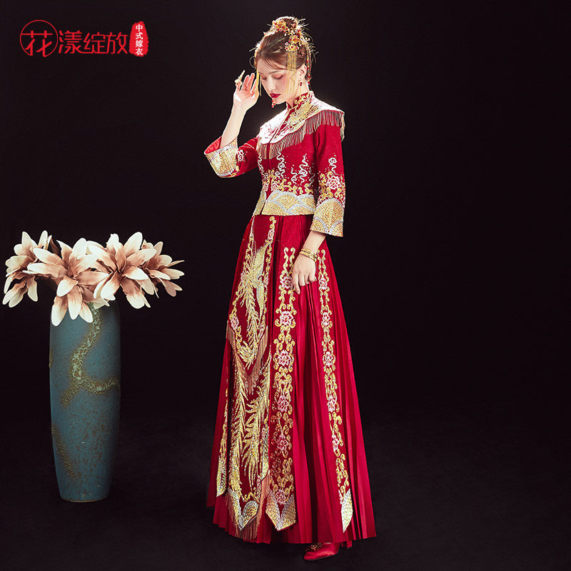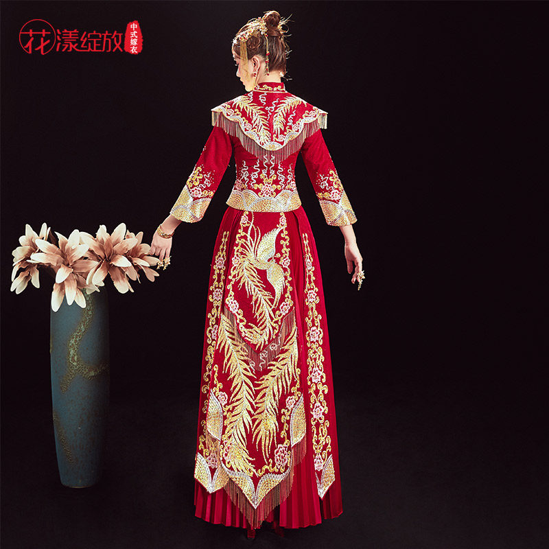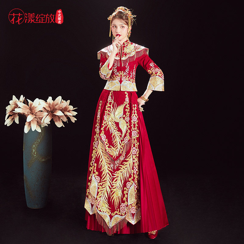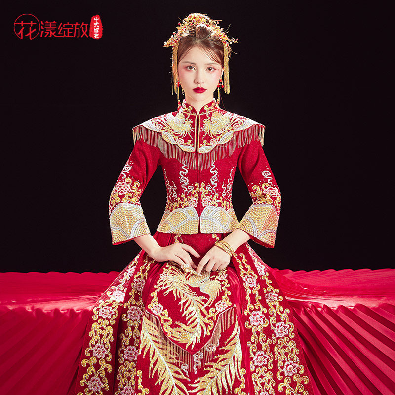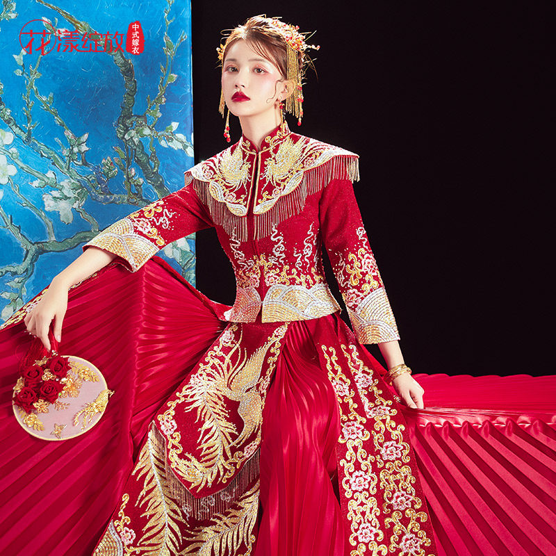 Традиционный свадебный наряд Сюхэ, свадебное платье, вечернее платье, коллекция 2021, дракон и феникс