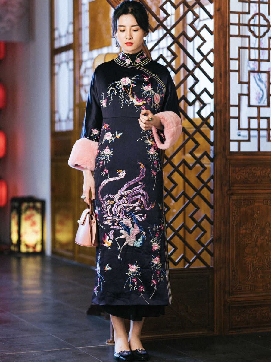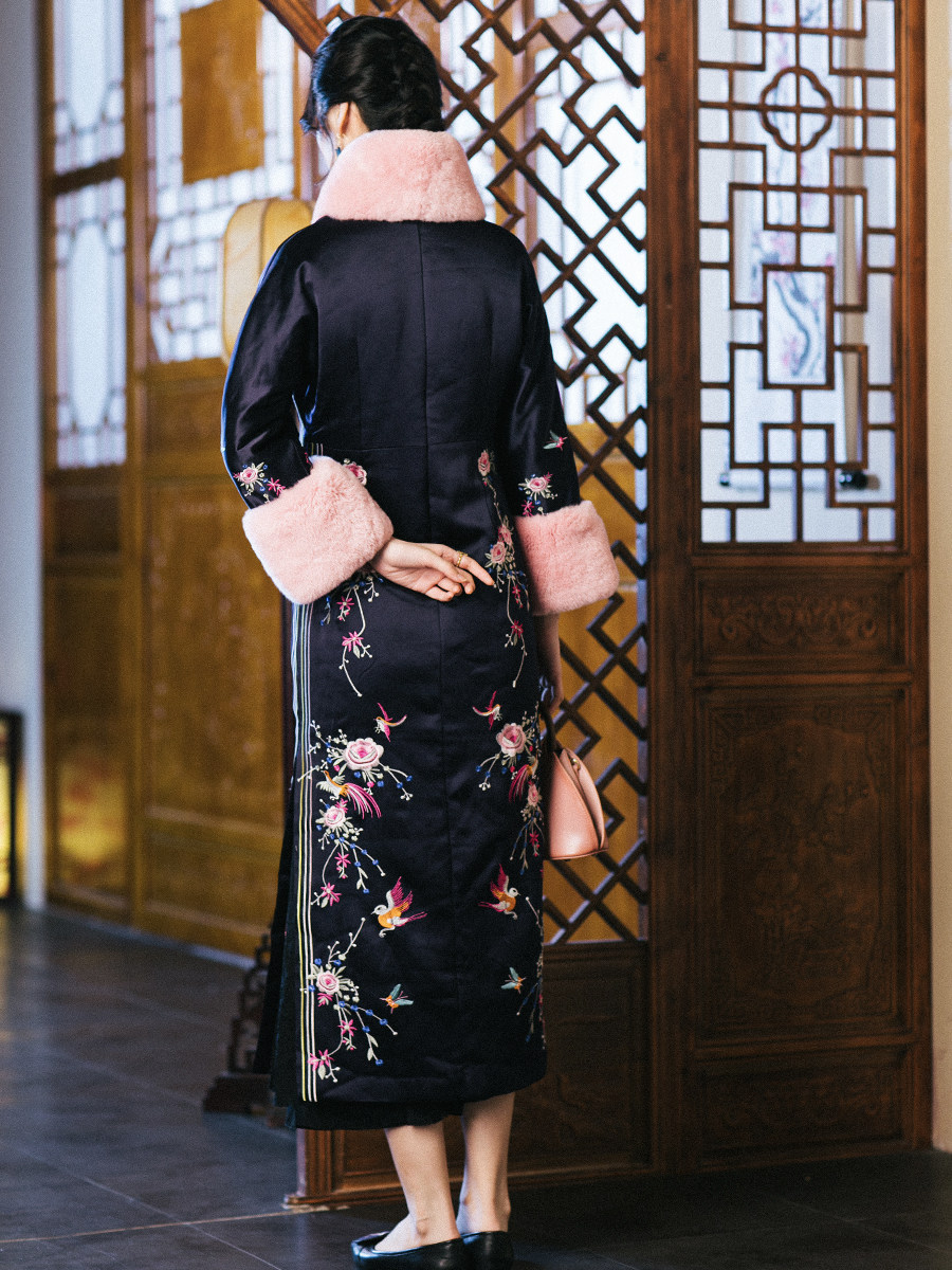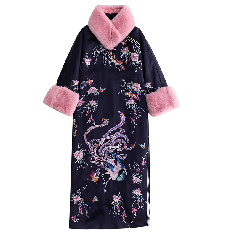 CPP540A Carina Lau's Tyme осень и зимний китайский ретро -ретро -отаку кроличьи волосы вышивка плюс хлопковые слойки большие рукава Cheongsam Juper