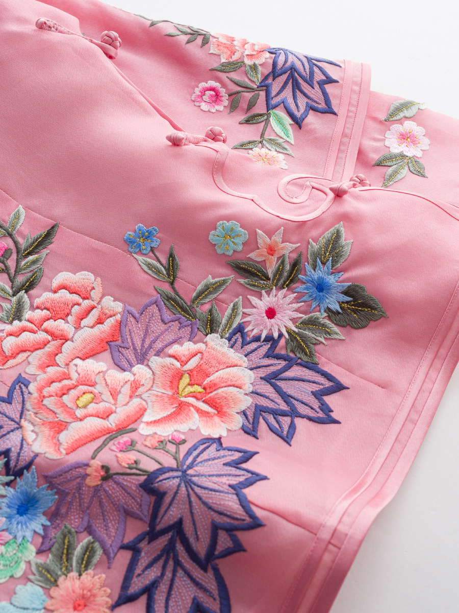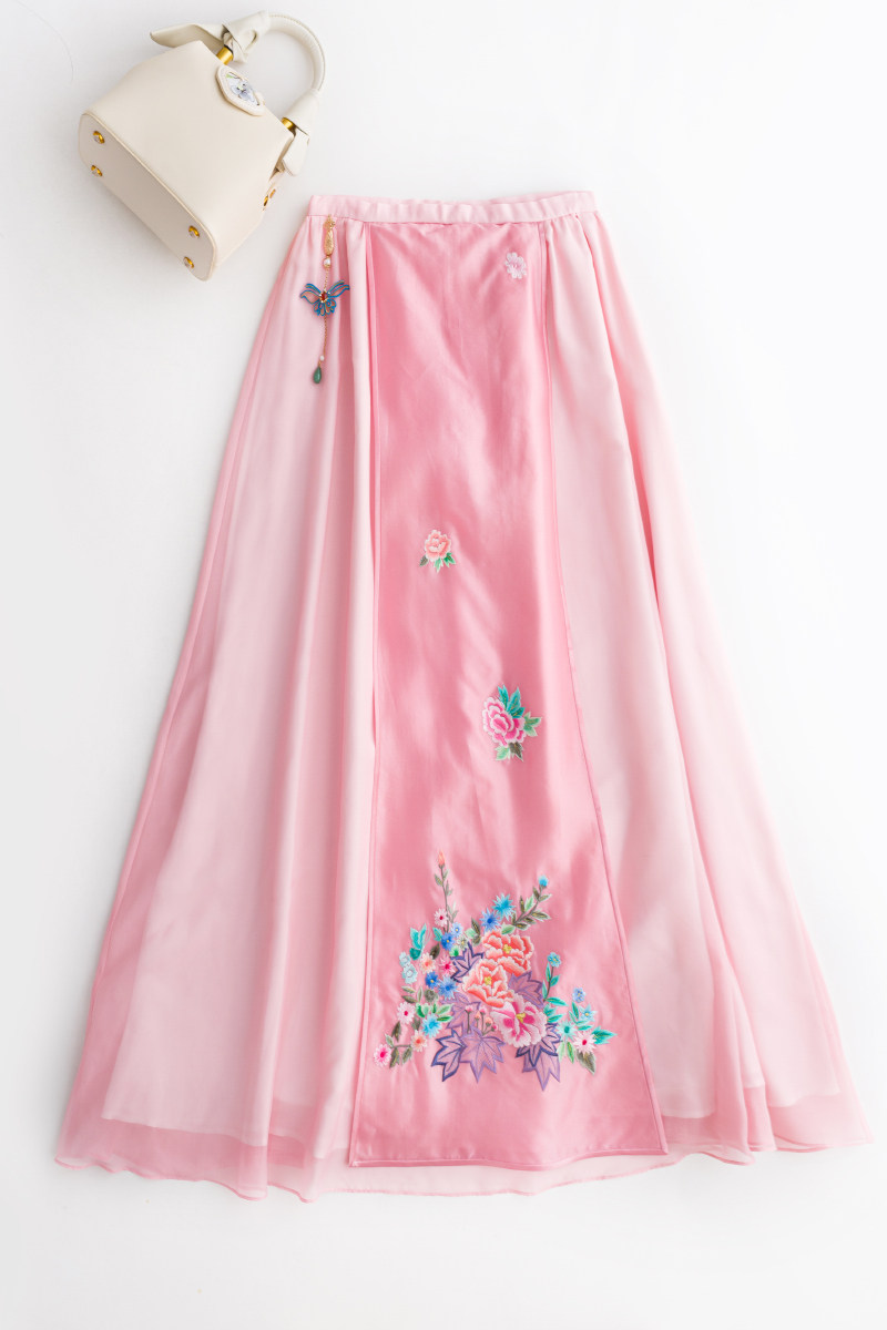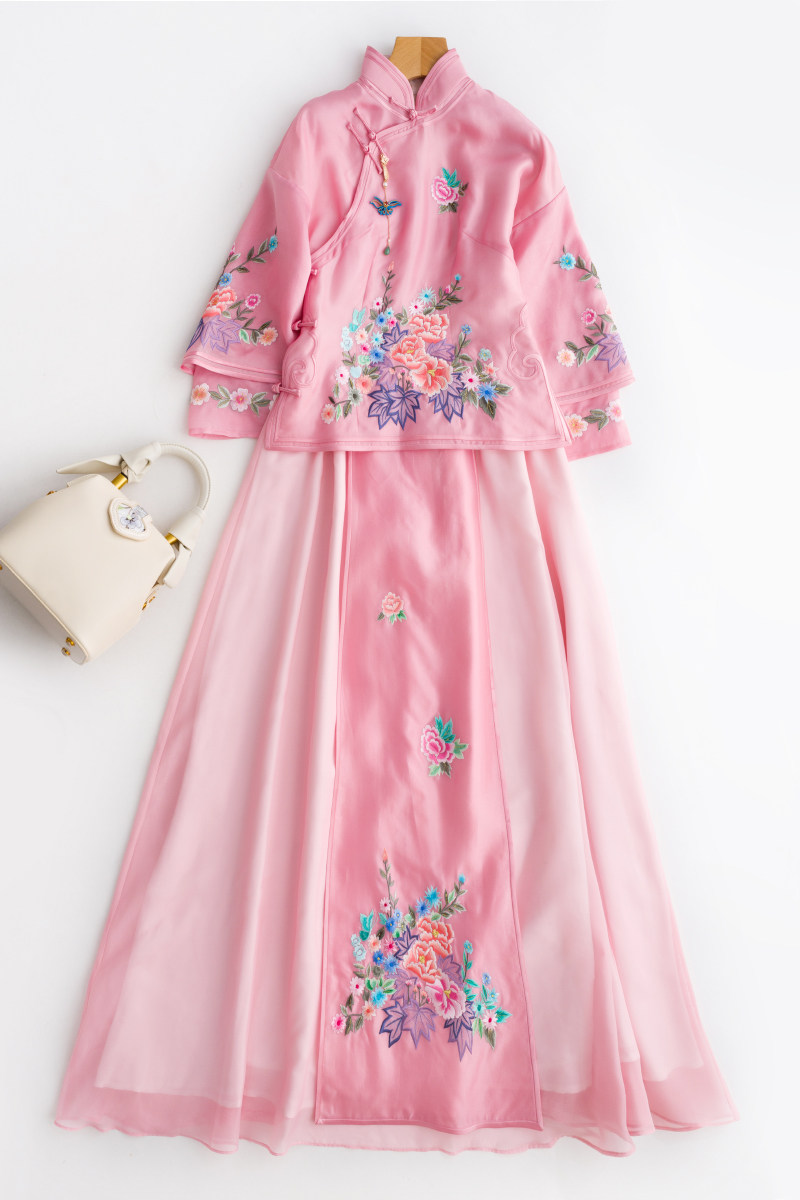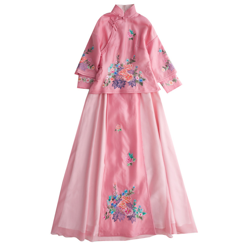 Летнее шелковое ципао, ханьфу, юбка, с вышивкой, китайский стиль