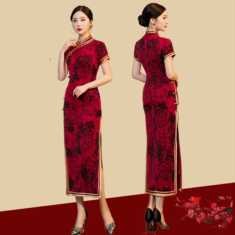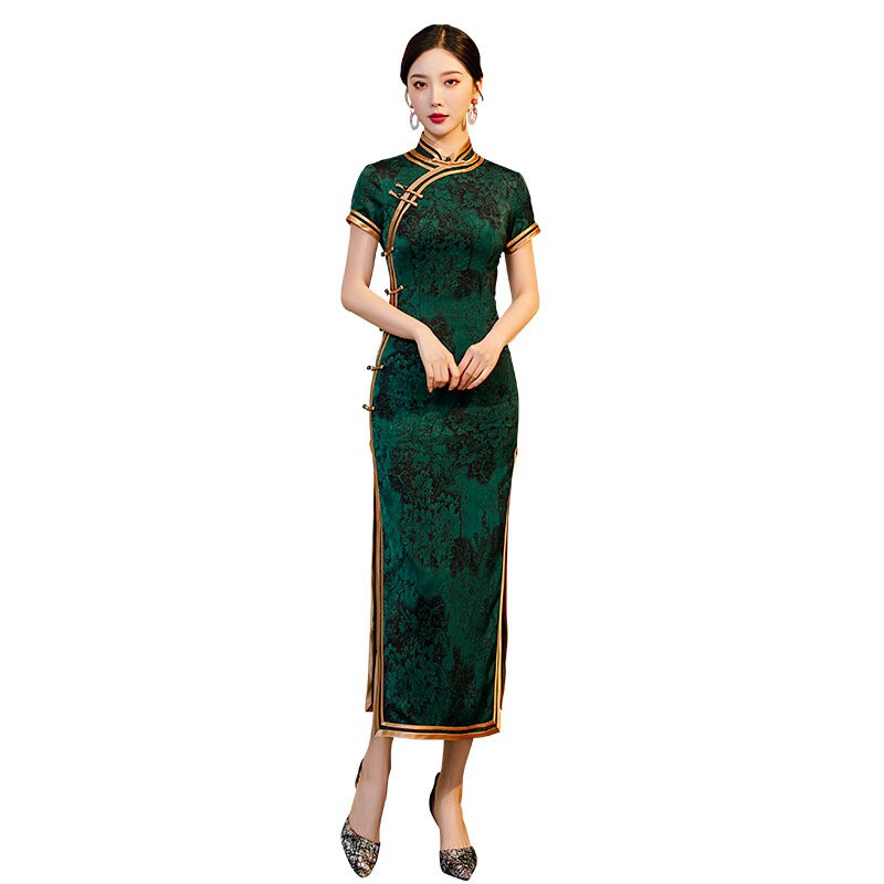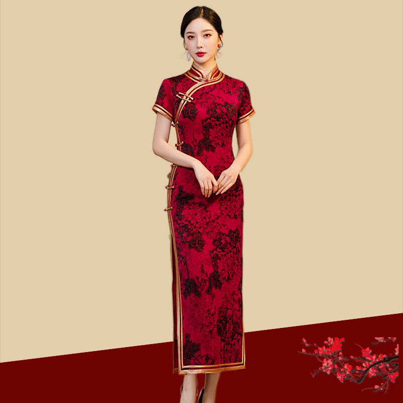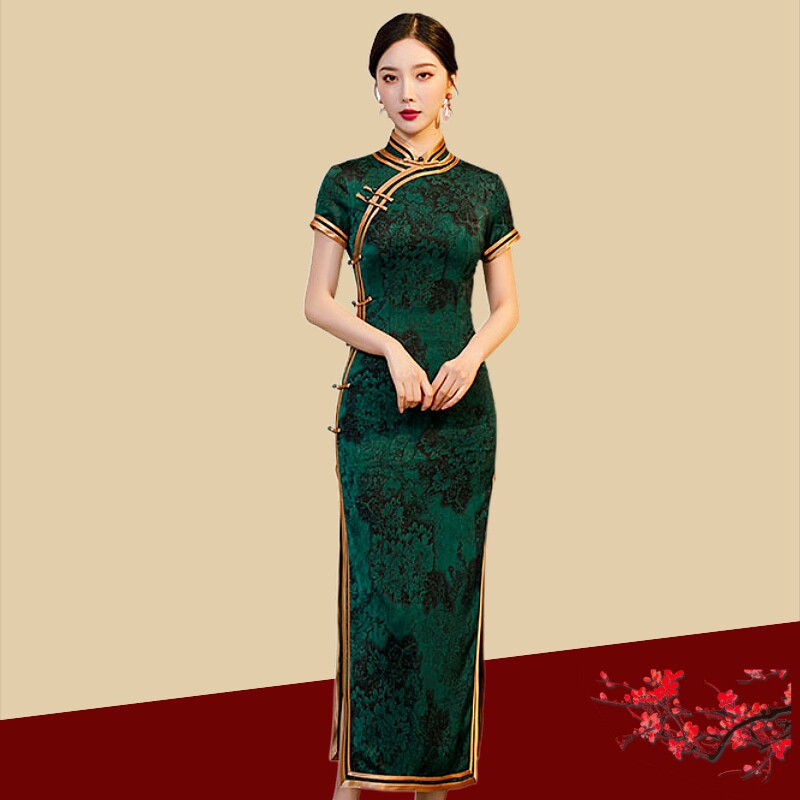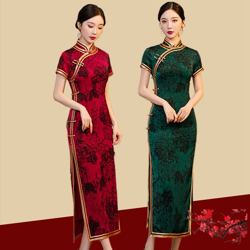 Китайское традиционное свадебное платье с искусственным ароматным облаком и боковой пуговицей, новинка 2024 года, шелковый Cheongsam для мамы большого размера