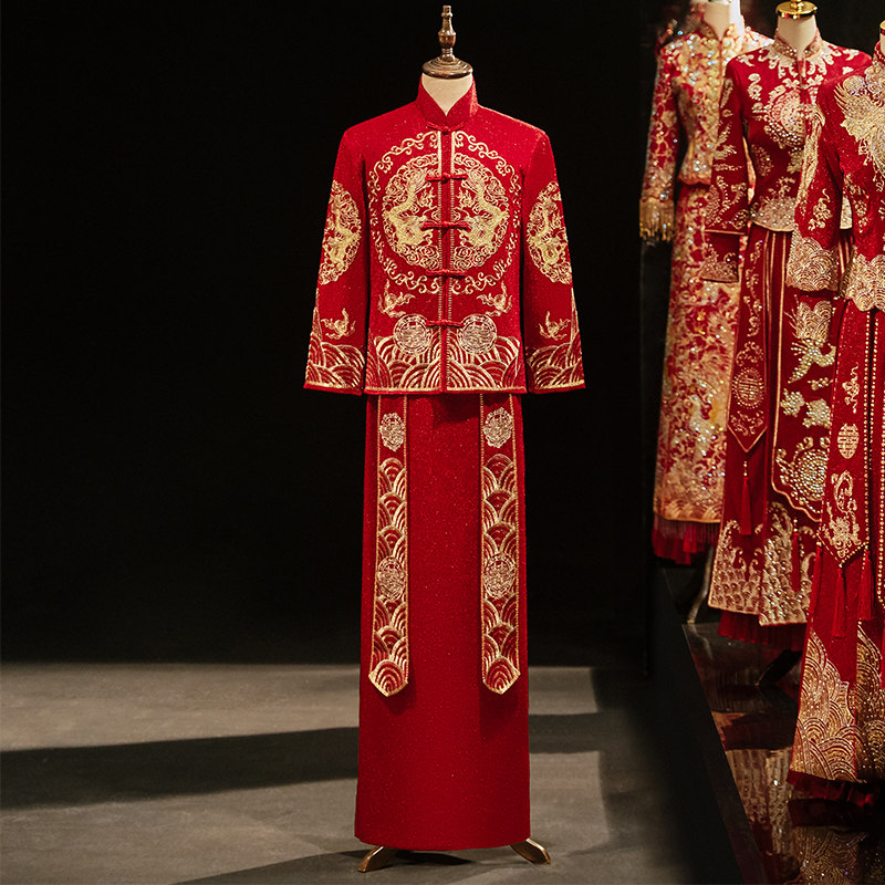 Традиционный свадебный наряд Сюхэ, вечернее платье, мужское свадебное платье, коллекция 2023, дракон и феникс, по фигуре