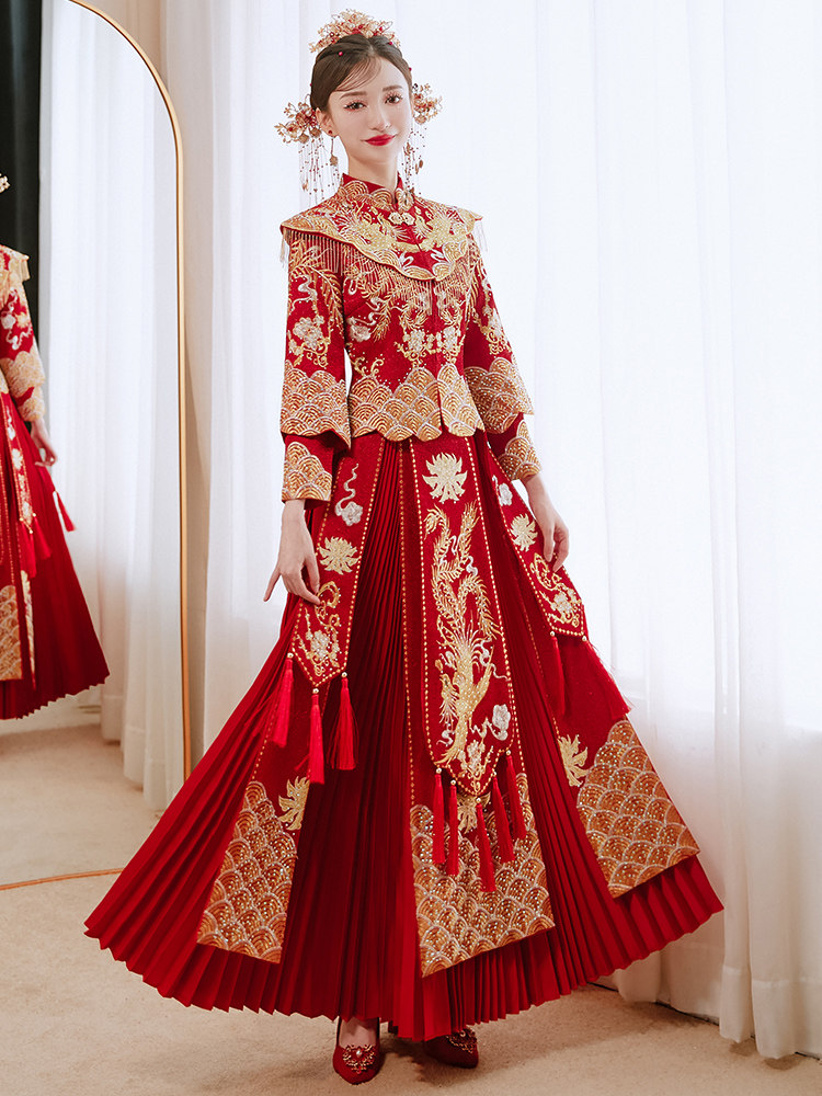 Традиционный свадебный наряд Сюхэ, свадебное платье, вечернее платье, коллекция 2023, дракон и феникс
