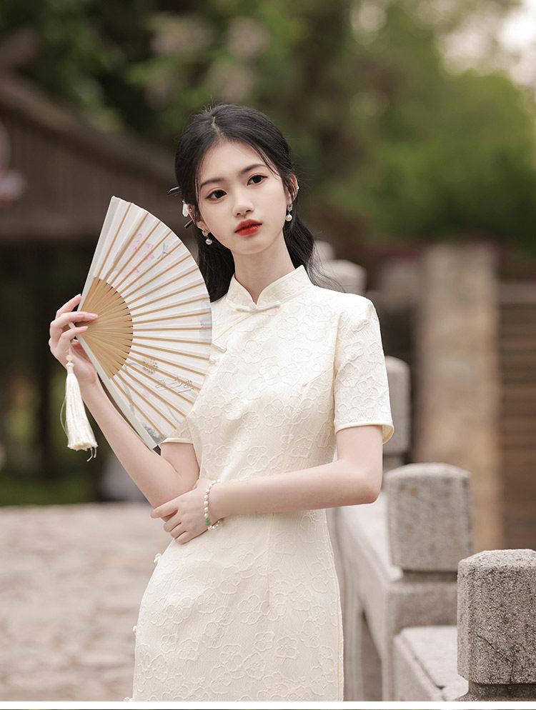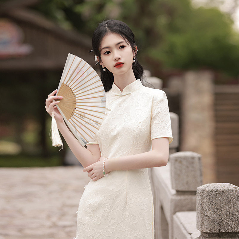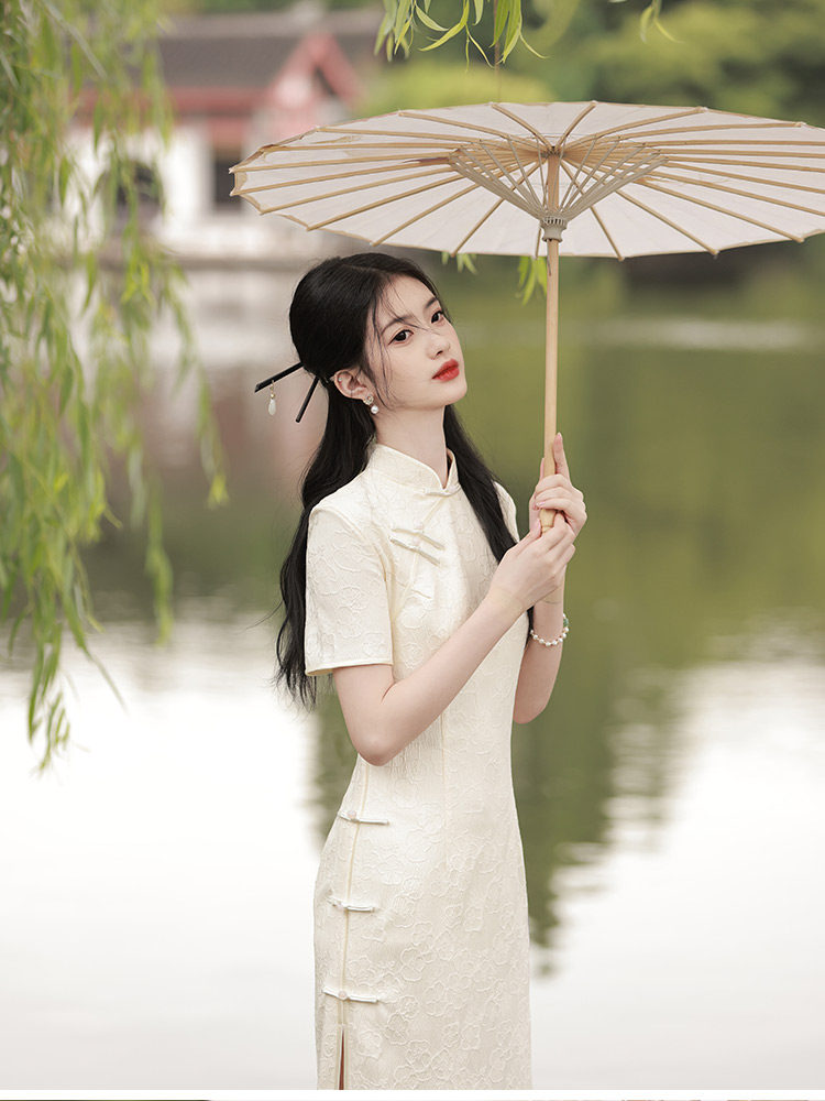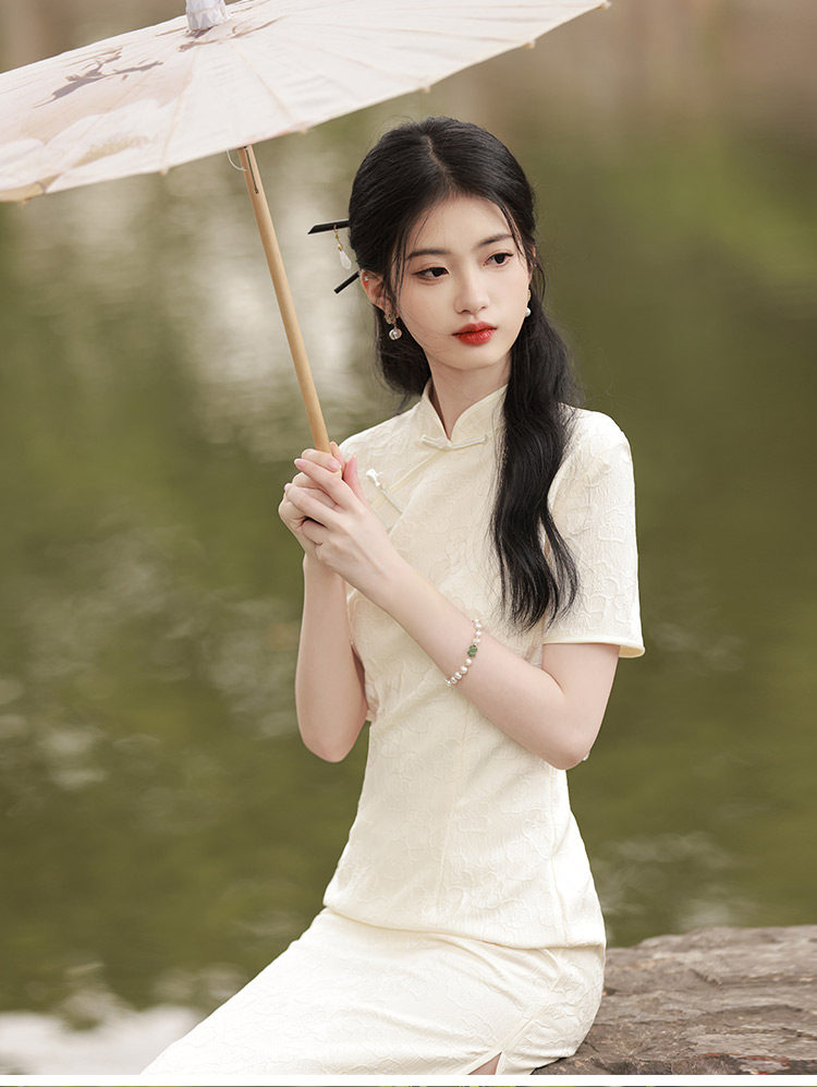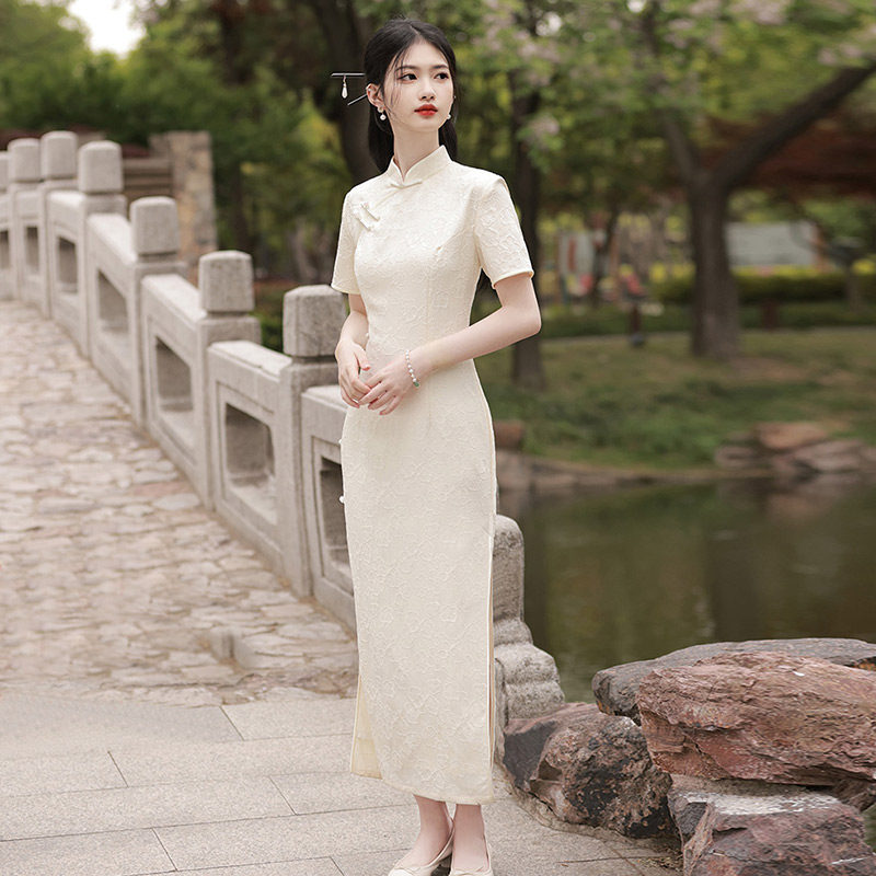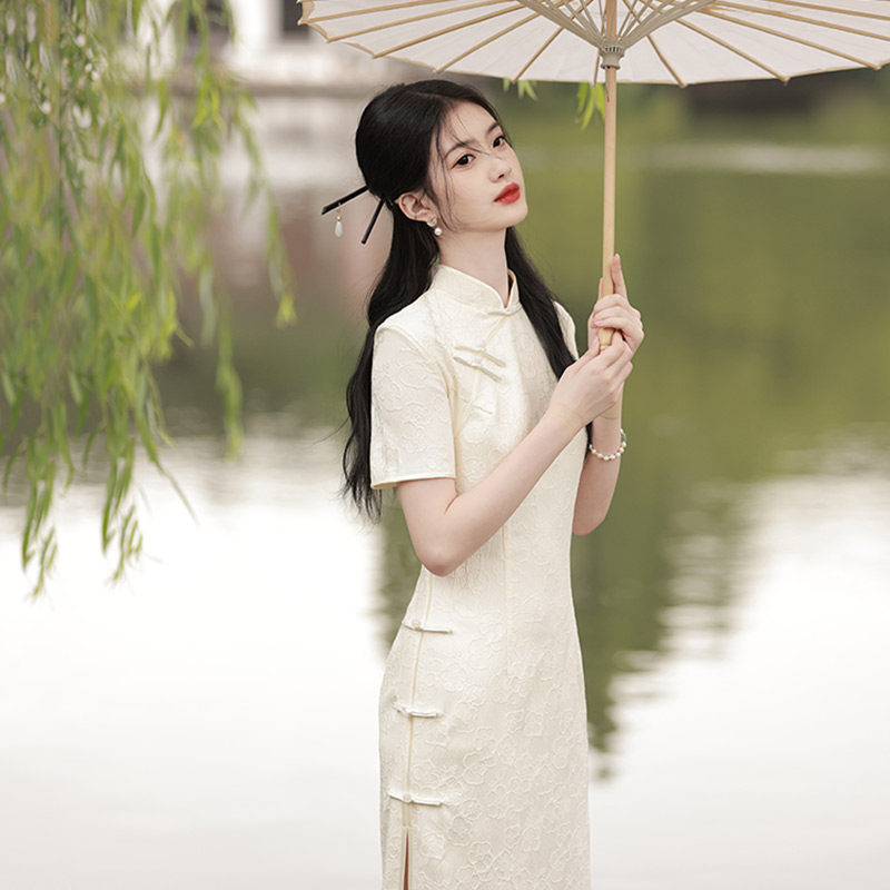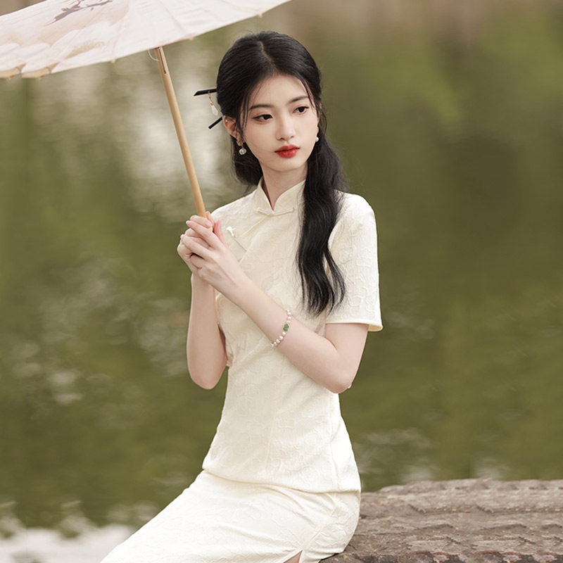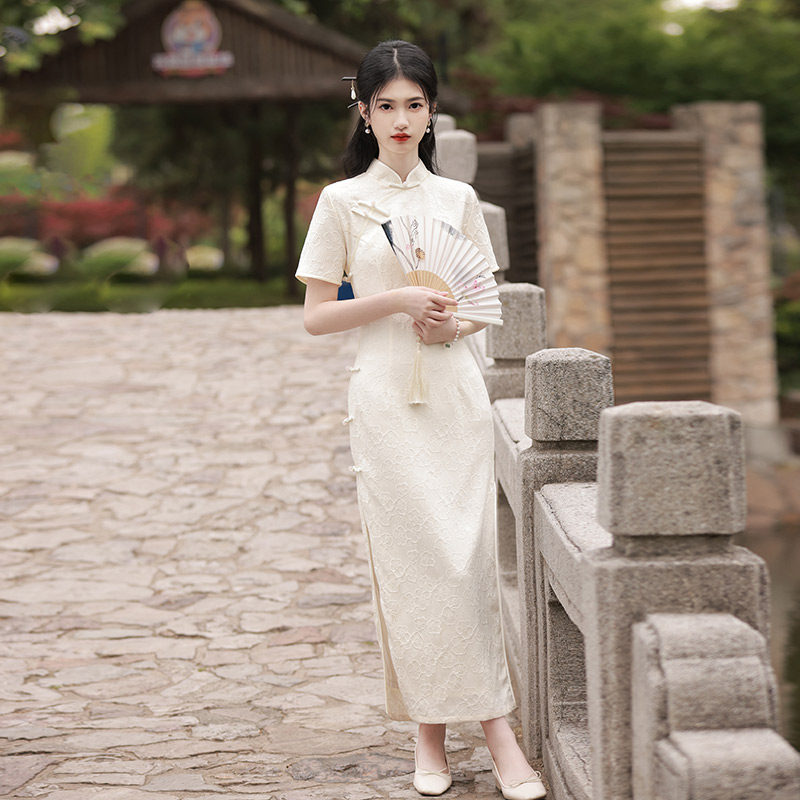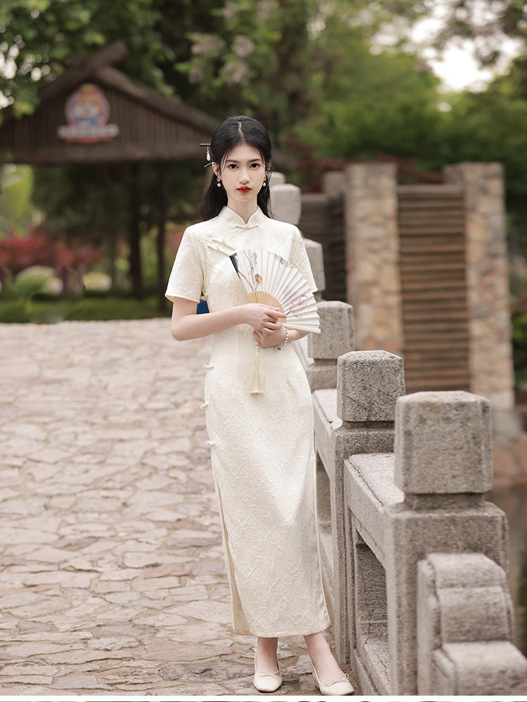 Белое длинное легкое ретро ципао