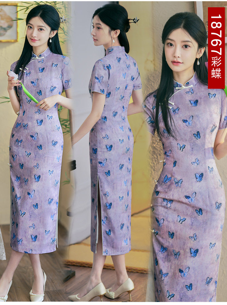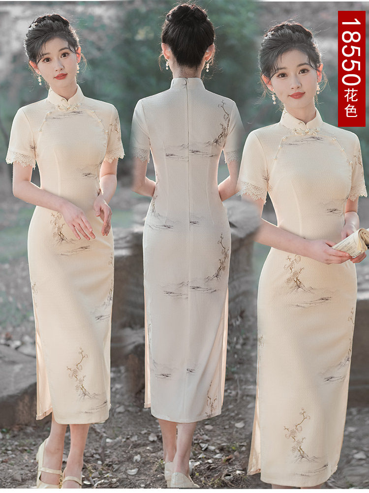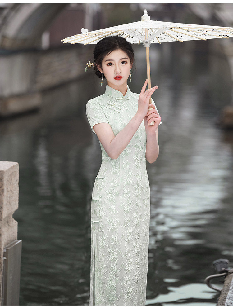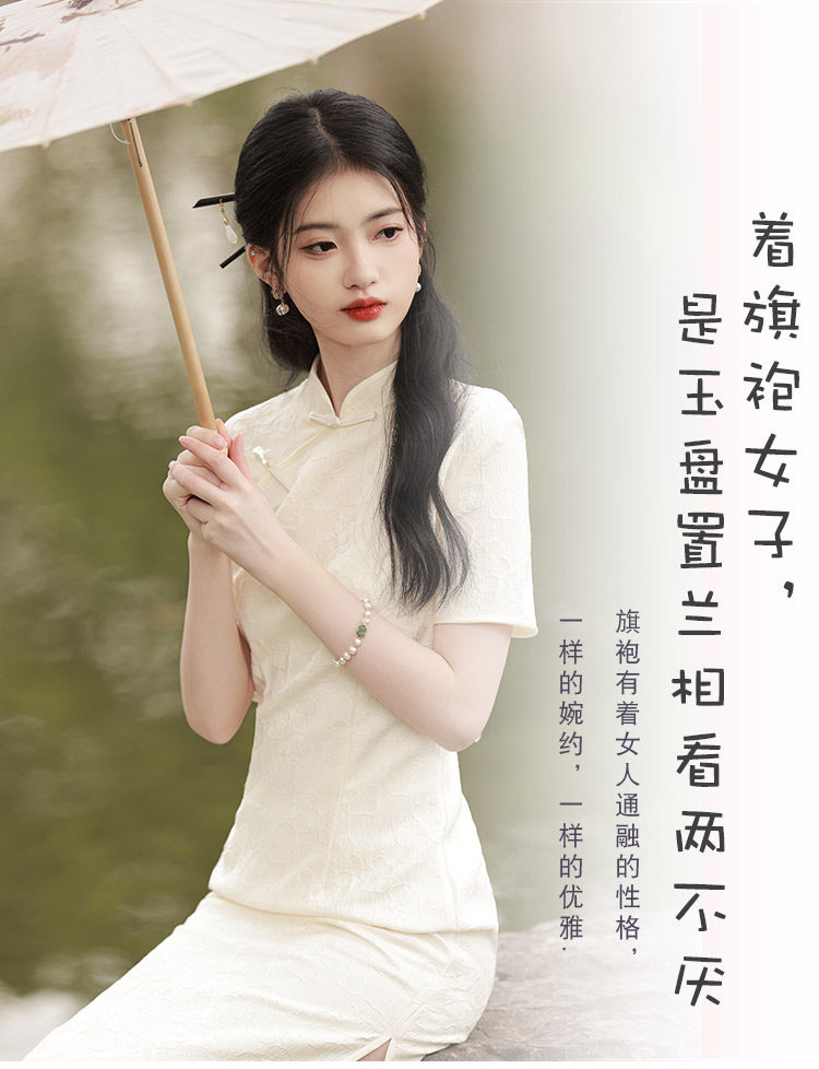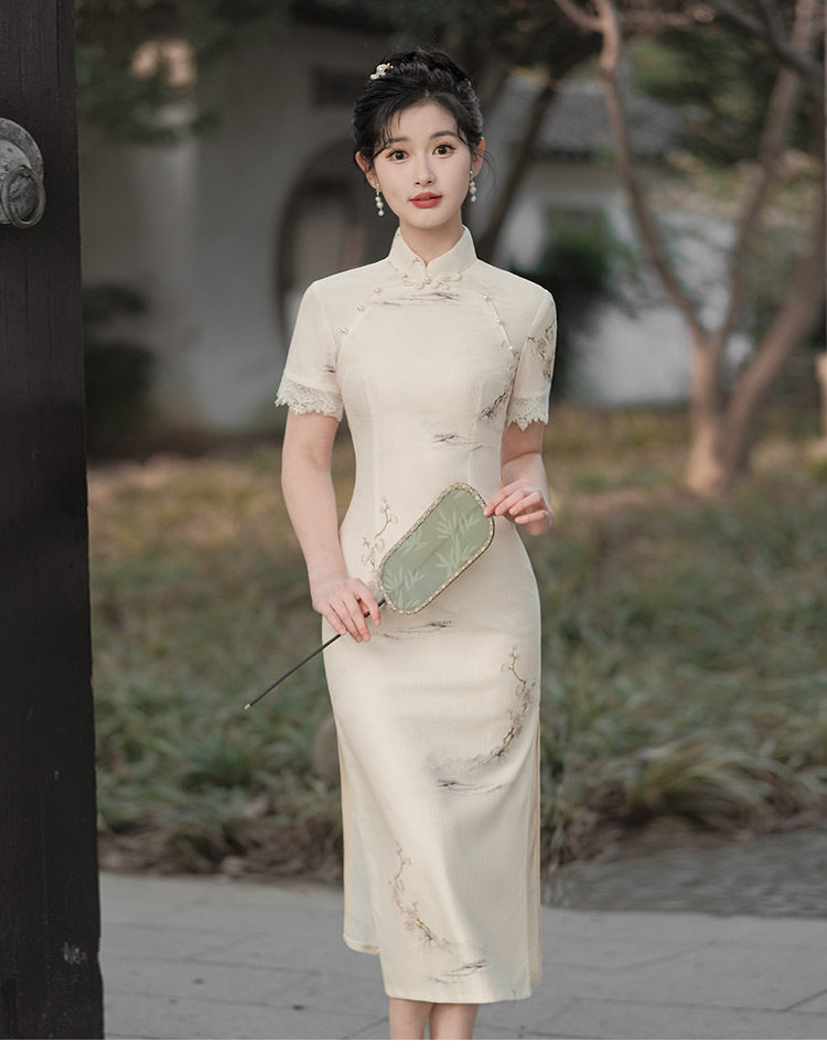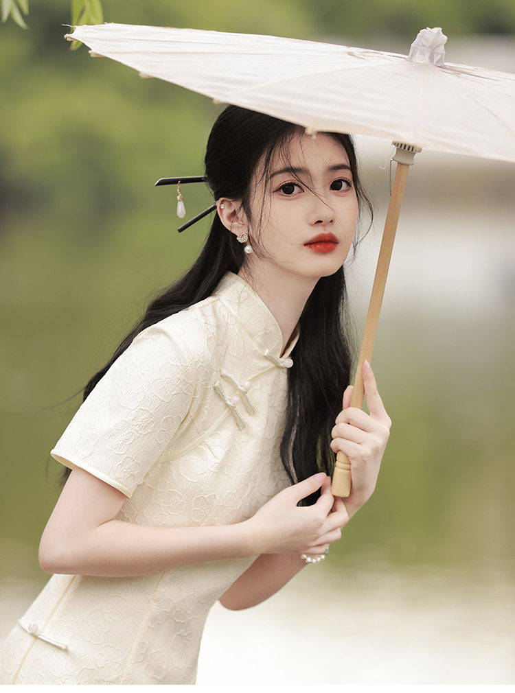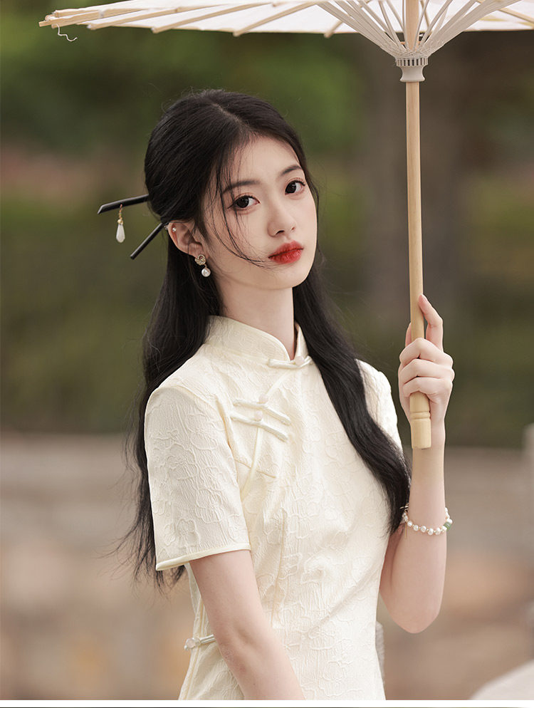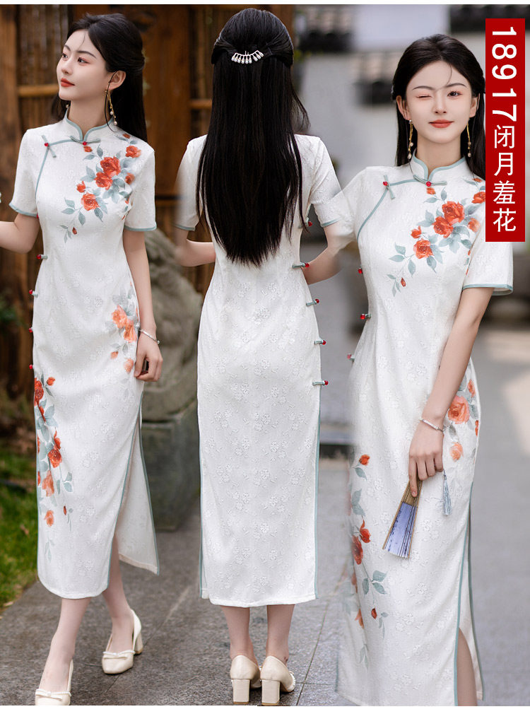 Белое длинное легкое ретро ципао