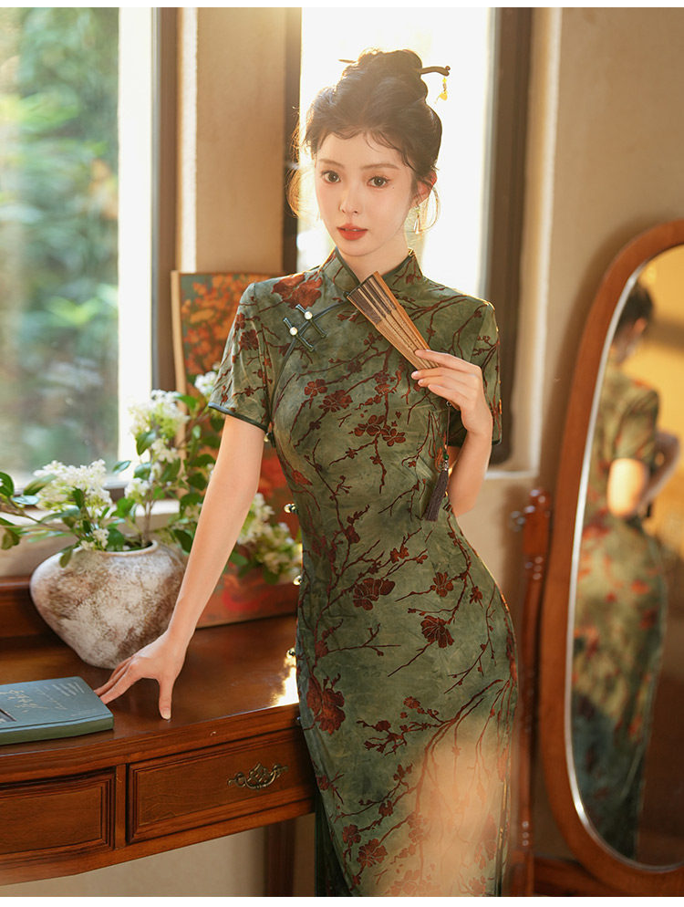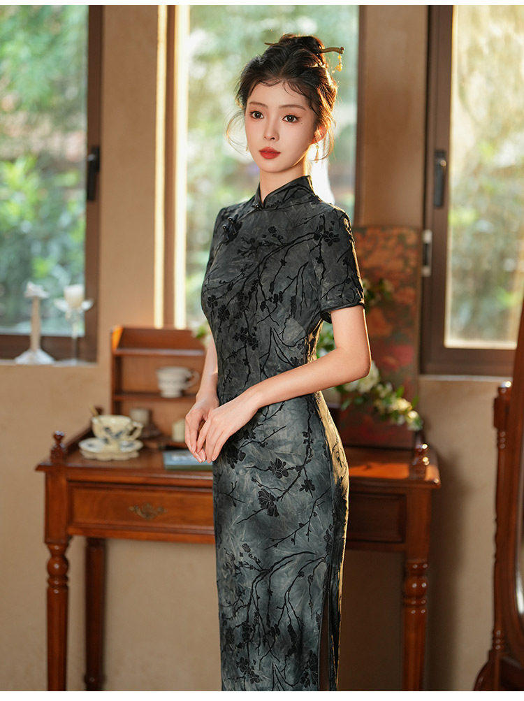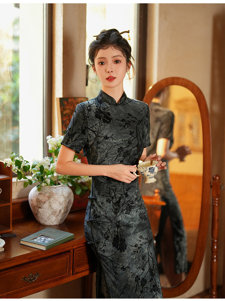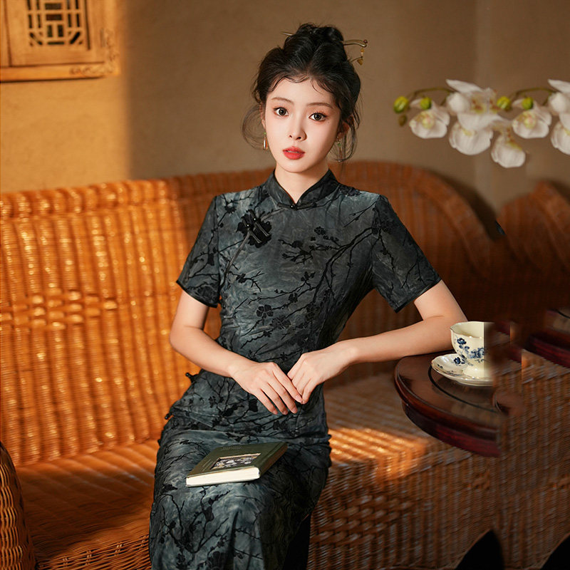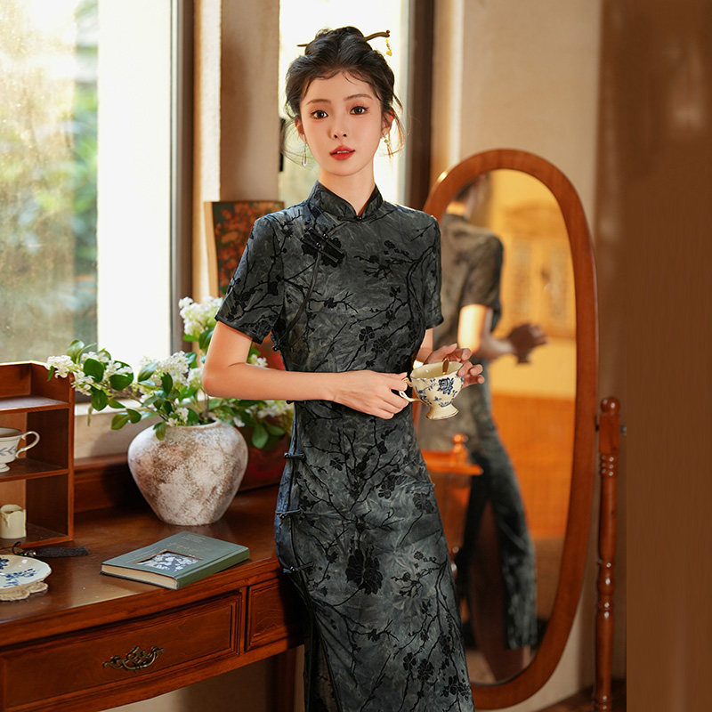 Длинное легкое ципао, ретро элитный ростомер, светлый стиль, китайский стиль