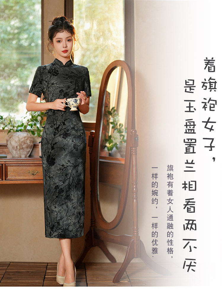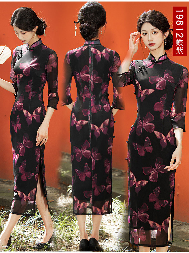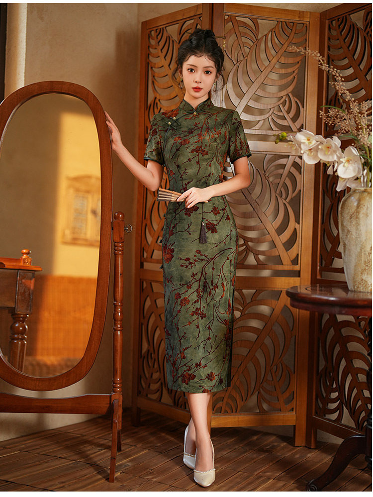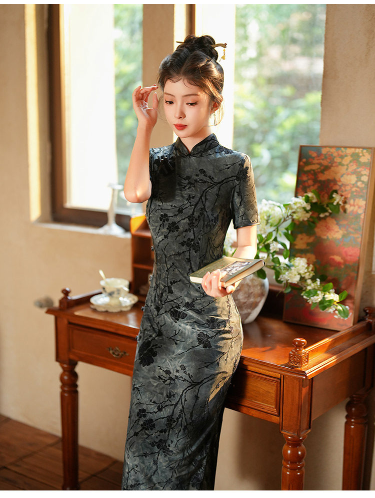 Длинное легкое ципао, ретро элитный ростомер, светлый стиль, китайский стиль