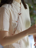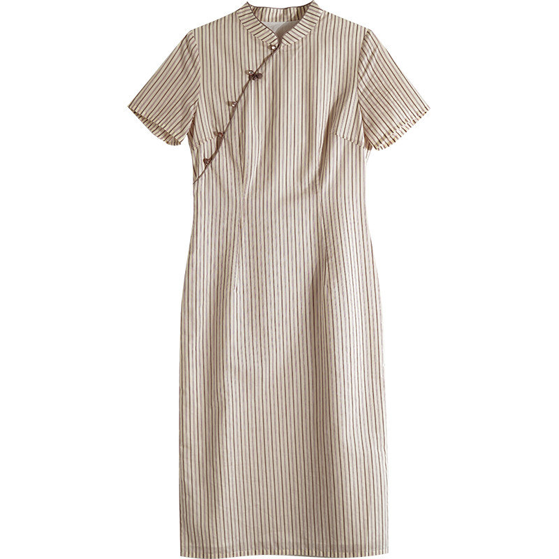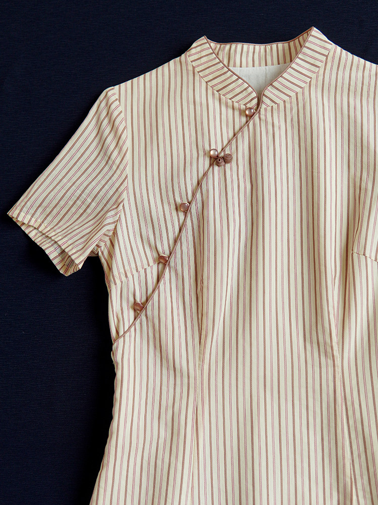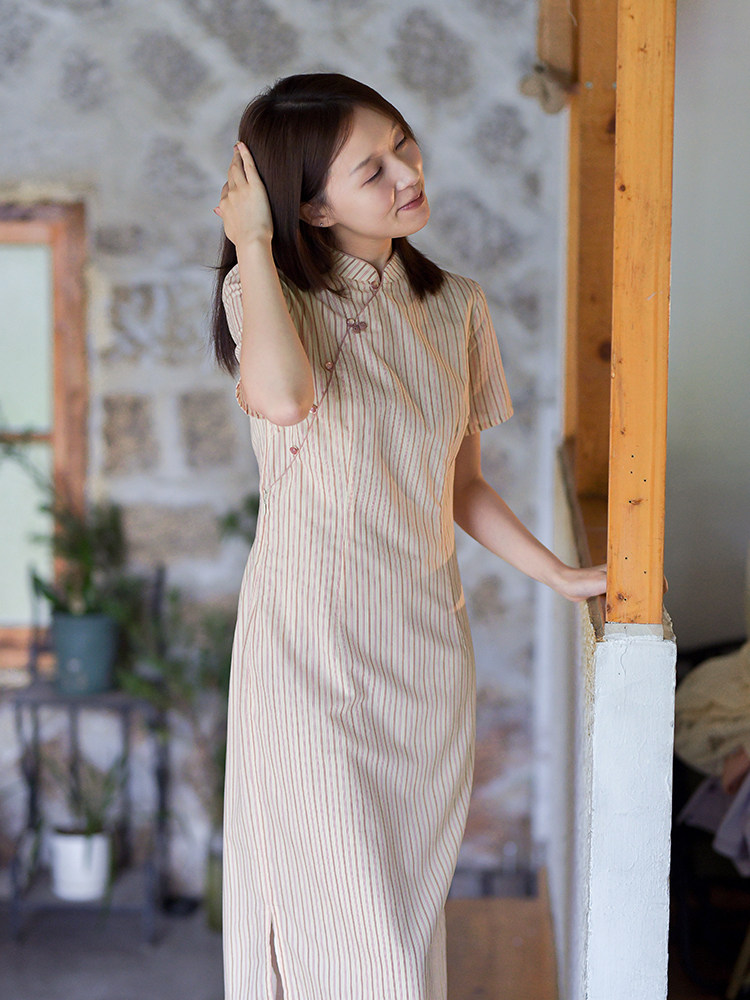 24CXC-414 [Красная абрикосовая аромат] Ретро легкий китайский стойкий воротник Цветочный пряжка Вертикальная полоса