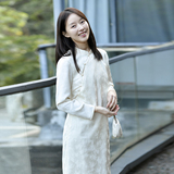 25CXC-056 [Годы персика и сливы] Прошлое и настоящее, новая ретро-юбка в китайском стиле с воротником-стойкой и диагональной планкой, жаккардовая юбка-чонсам