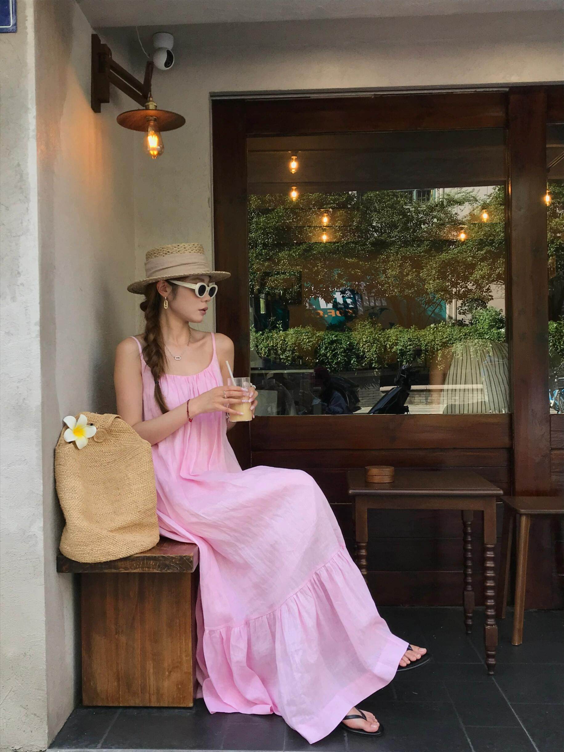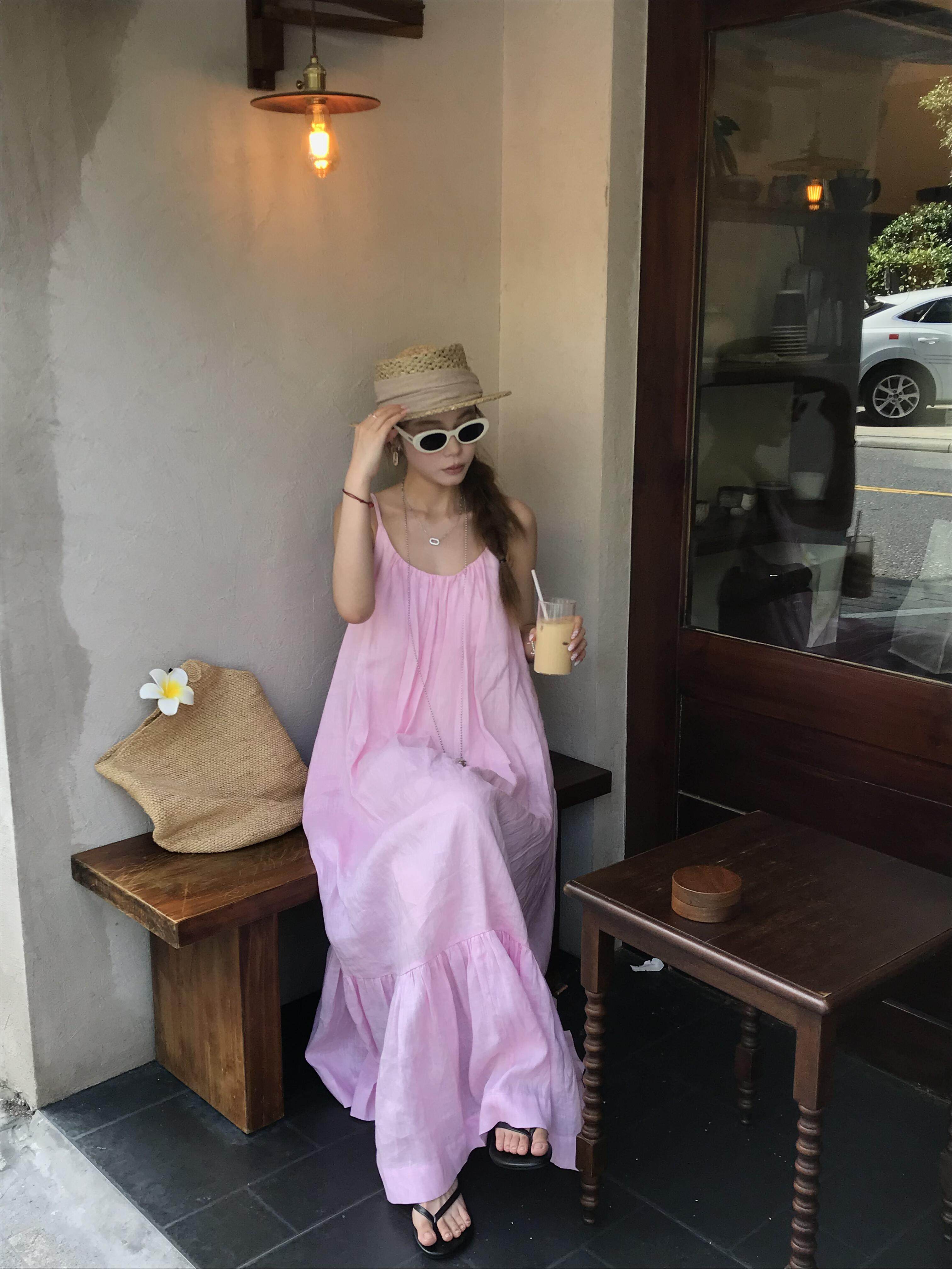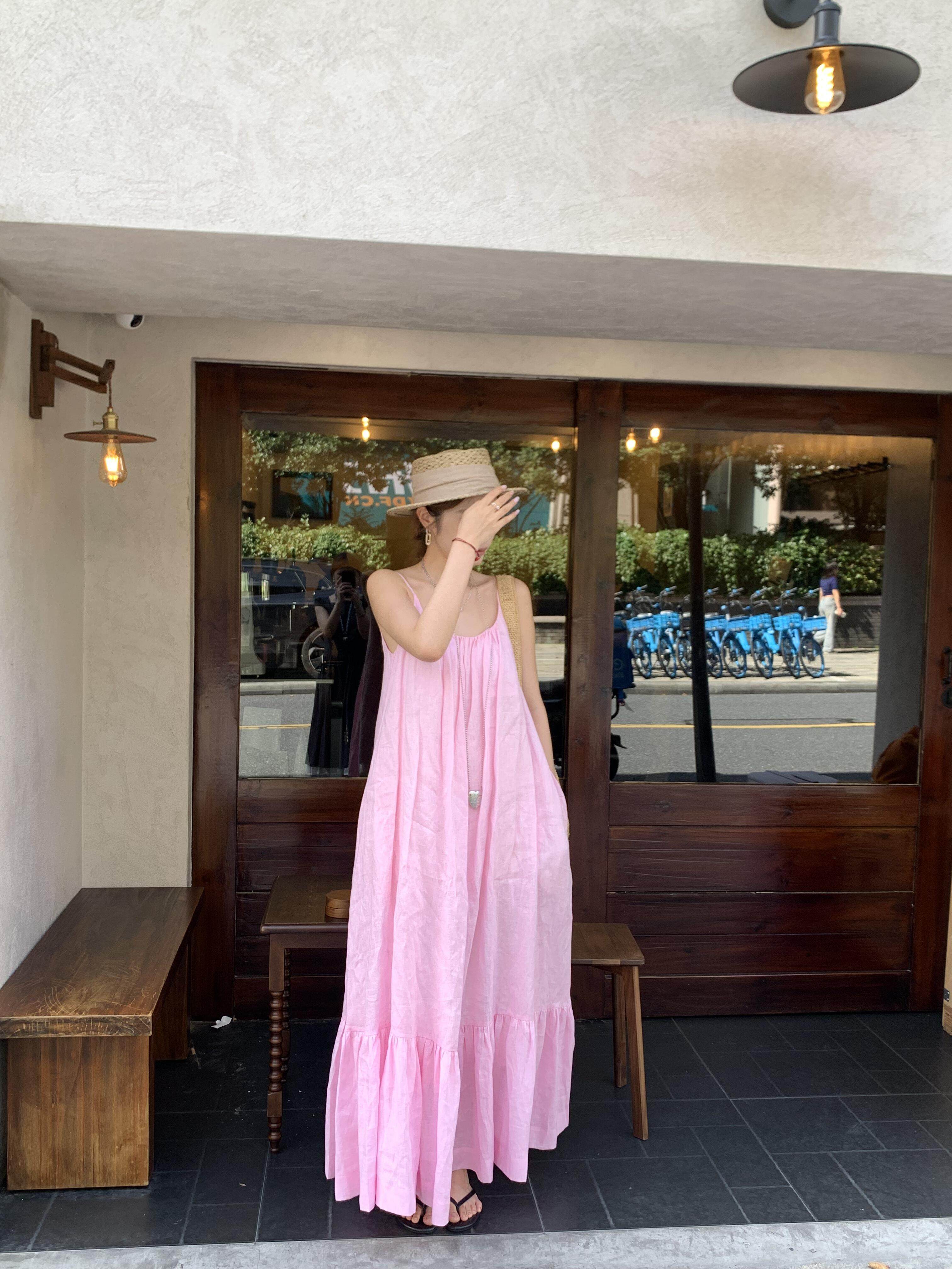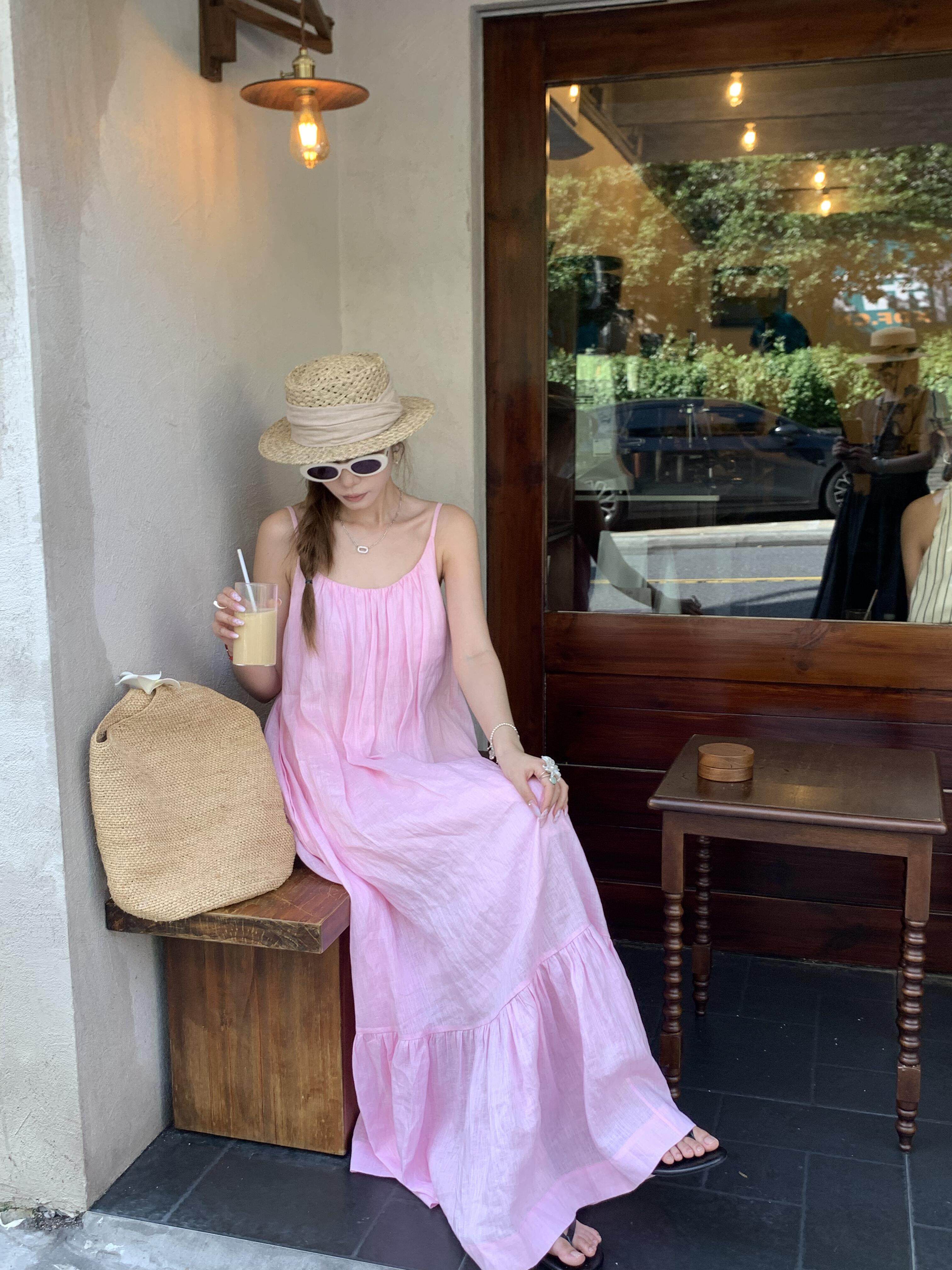 Розовая летняя длинная юбка, французский стиль, свободный крой, эффект подтяжки, с открытой спиной