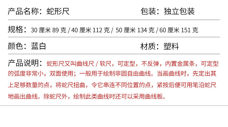 【Какао -инструменты】 40 см змеи -обработанная линейка/кривая линейка/комическая одежда мягкая линейка