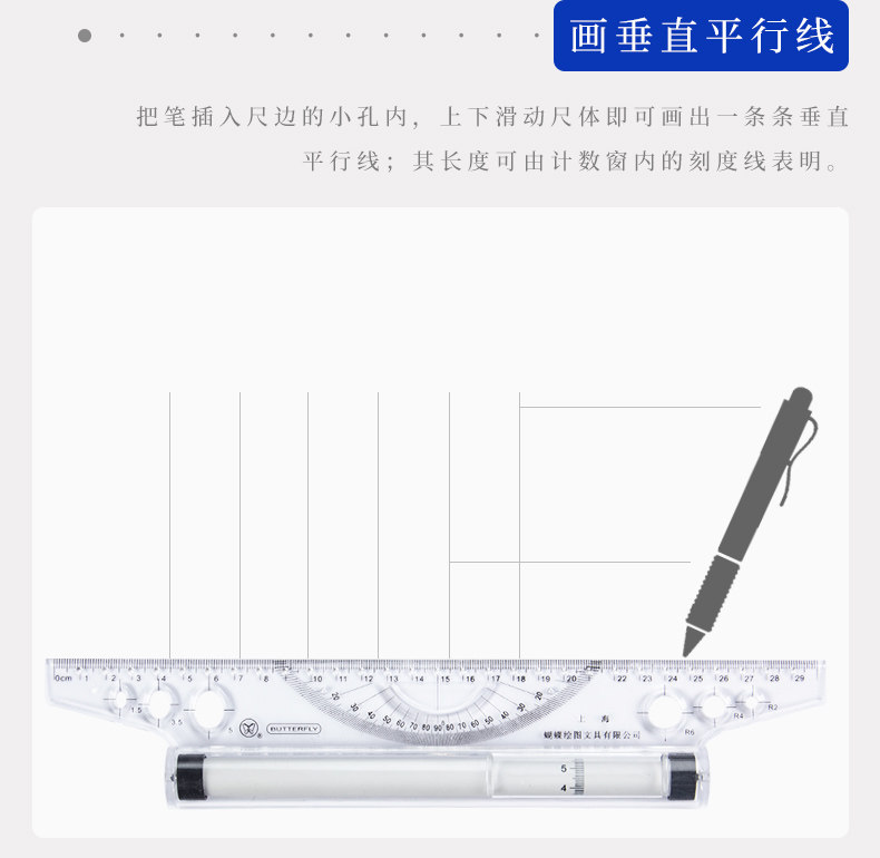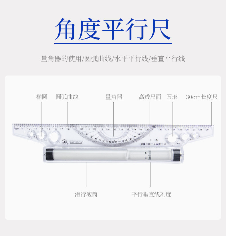 Угольная параллельная нога 30 см бабочка Параллельная линейка зарегистрированного архитектора Дизайн дизайн Тестовый Тест инструмент