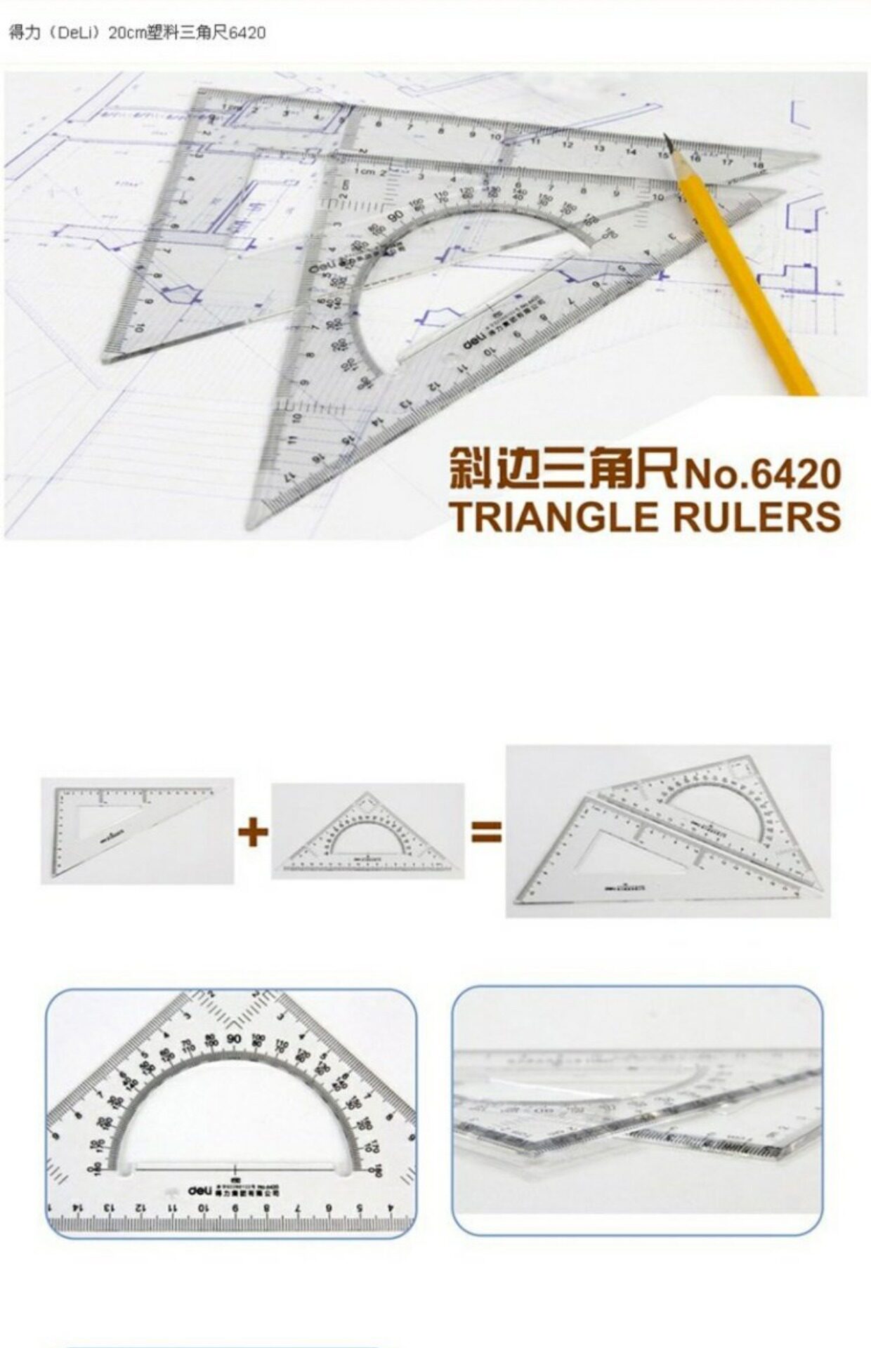 Deli 6420 Пластическая треугольная река 18 см Треугольник начальной школы начальной школы студенческие канцелярские товары рукав используйте правитель инструментальных инструментов