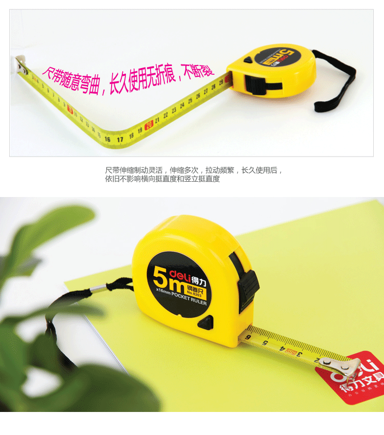 Deli 8203 Стальная рулона лента 5 мм измеритель Meter Meter Reler 8209 Автоматическая сжимающая лента Tredger 7,5 метра прямой линейка
