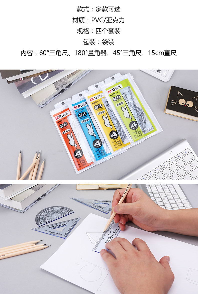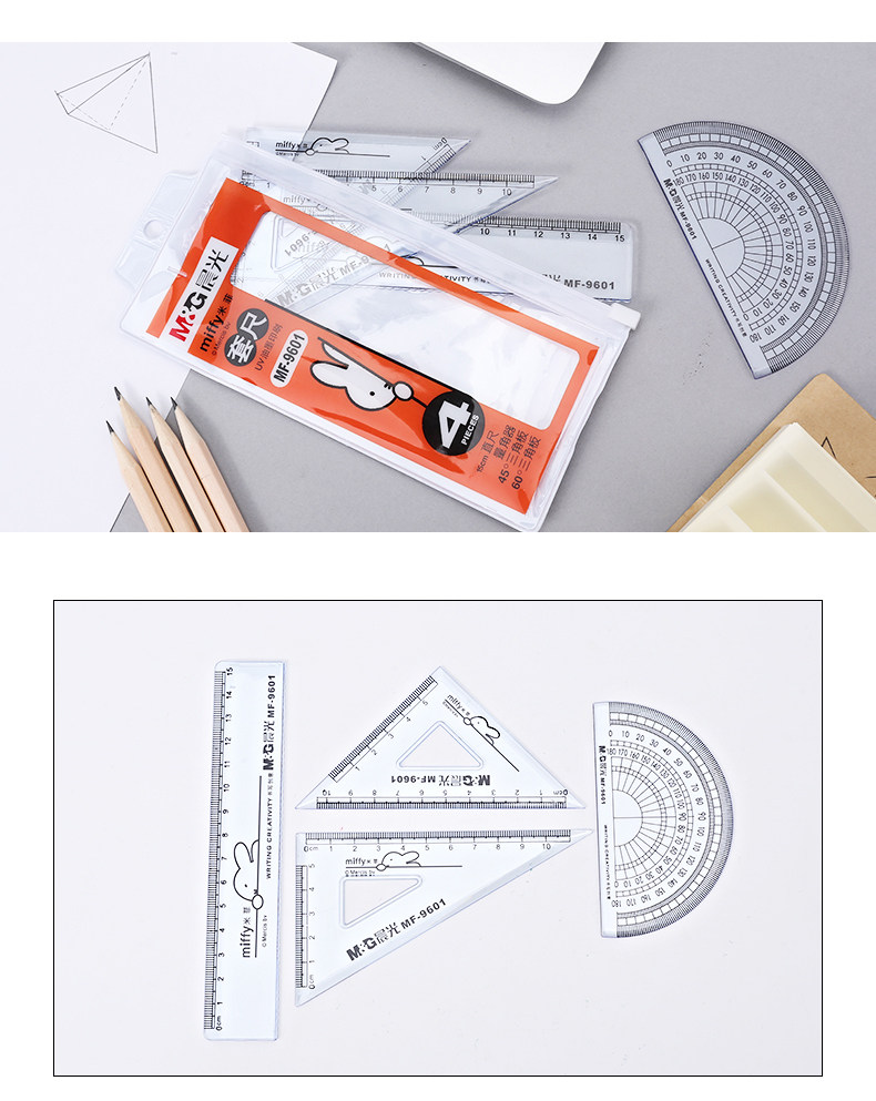 Линейка для школьников, канцтовары, прозрачный милый комплект, простой и элегантный дизайн, 15см, японские и корейские, 4 предмета