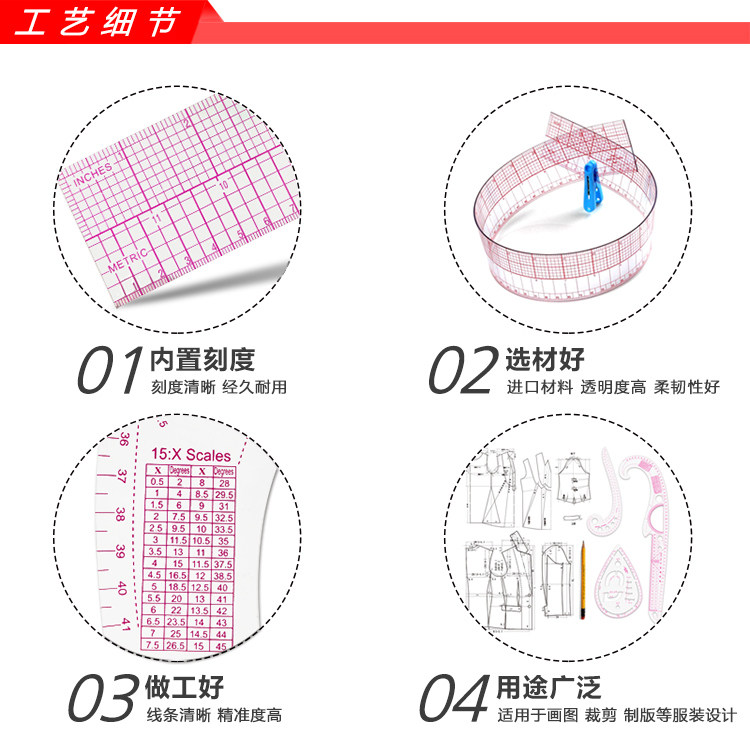 Руководитель рукава версии линейки линейки -манжеты, портной линейки, прототип дизайна рисования одежды 6301