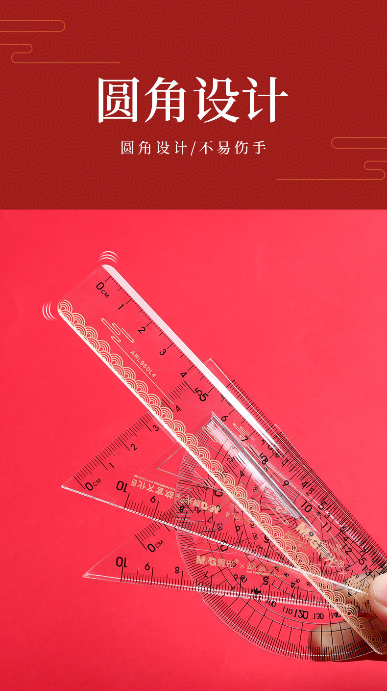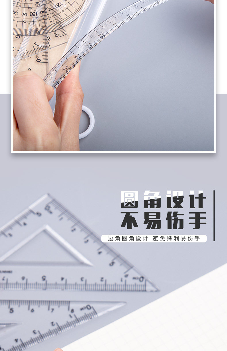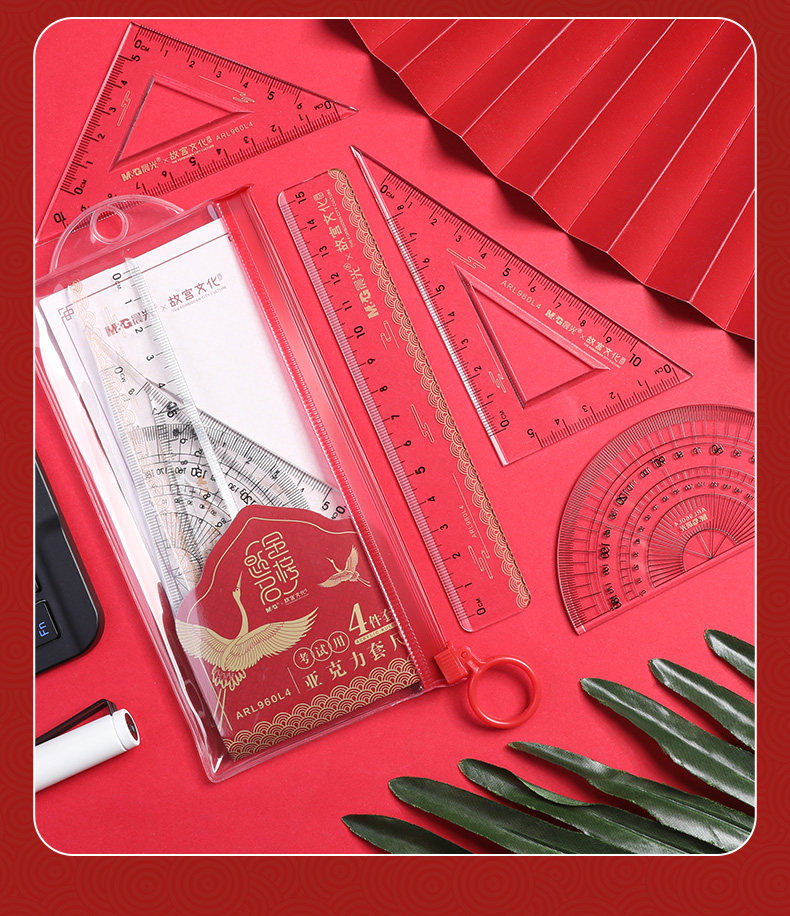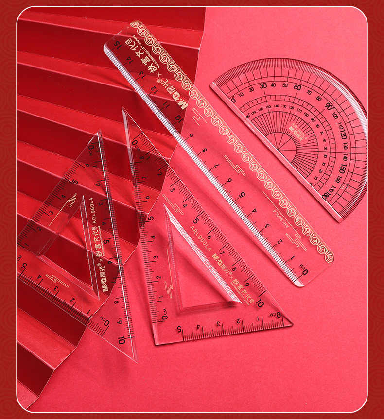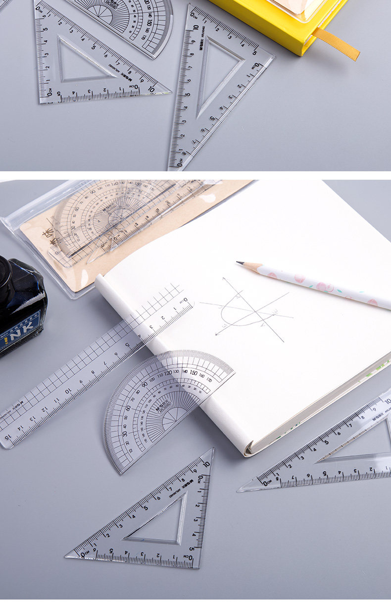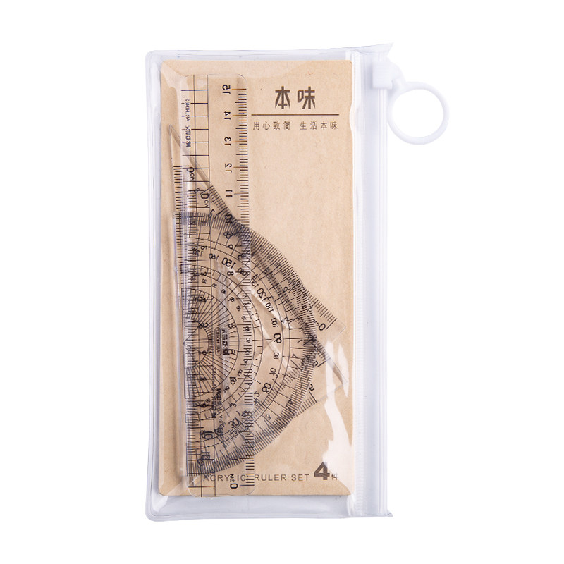 Акриловая линейка для офиса для школьников, канцтовары, универсальный комплект для рисования, 4 предмета