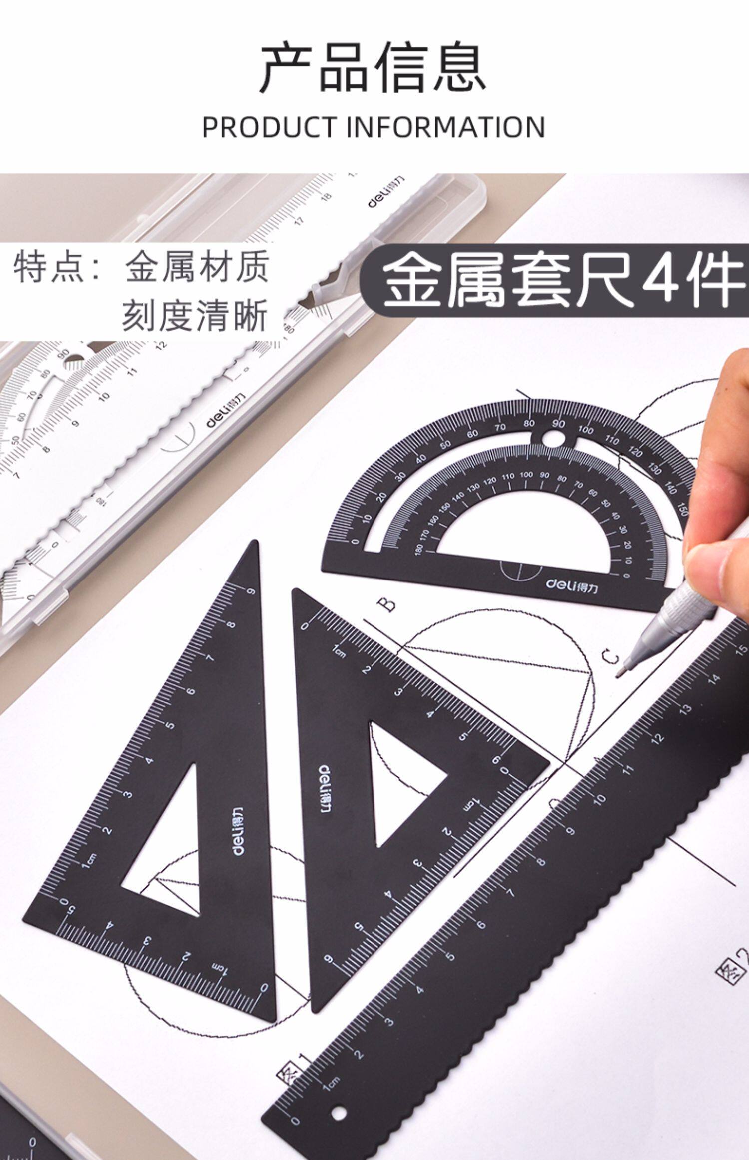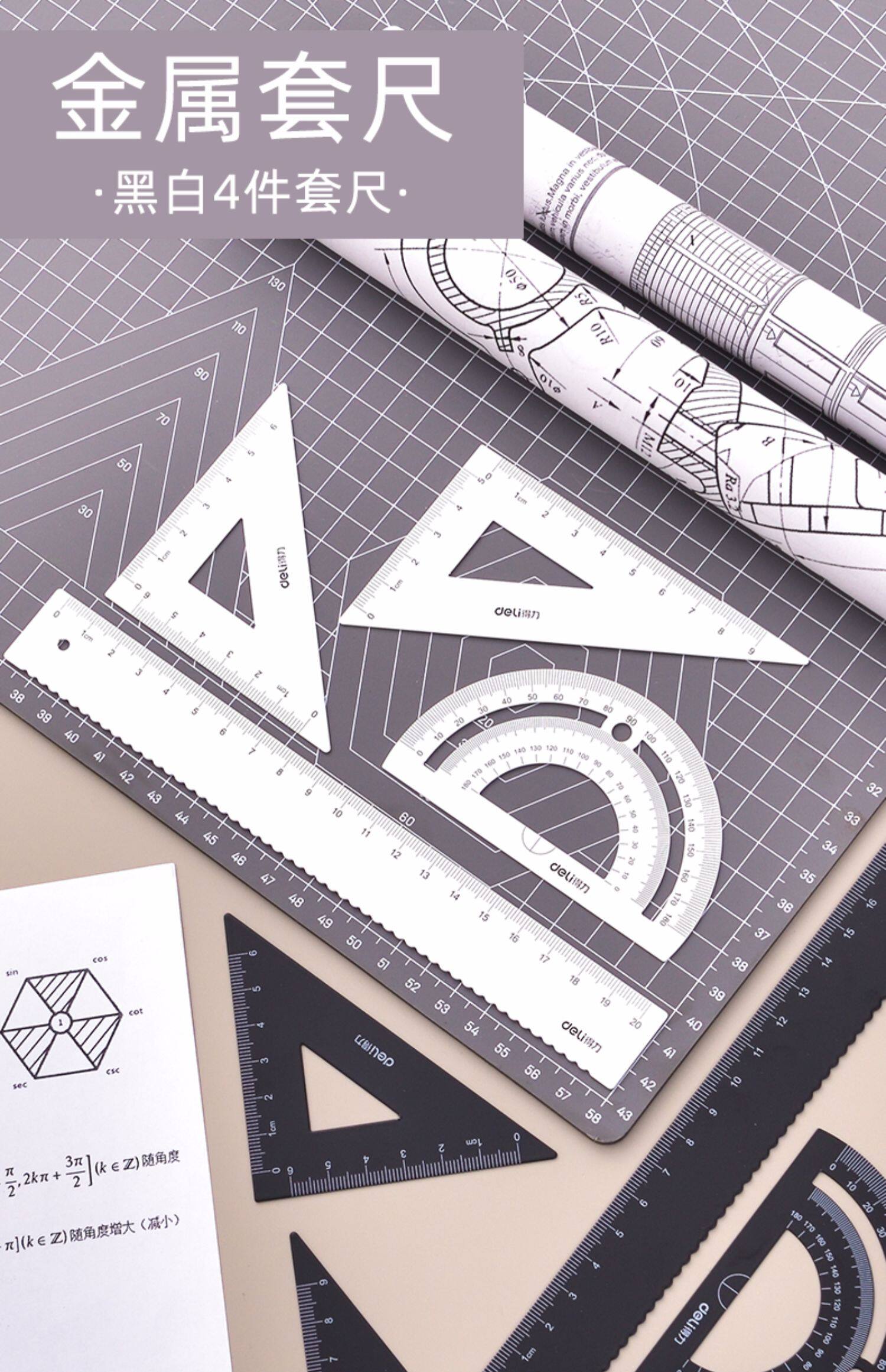 Металлическая линейка для школьников, волнистый комплект, универсальные детские канцтовары, 4 предмета