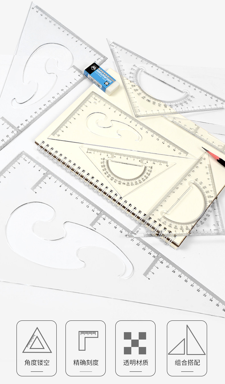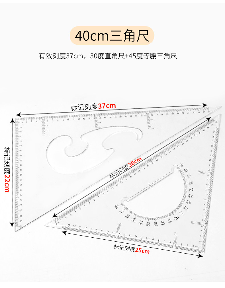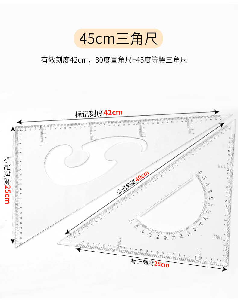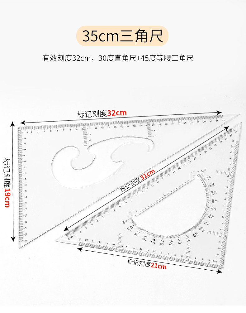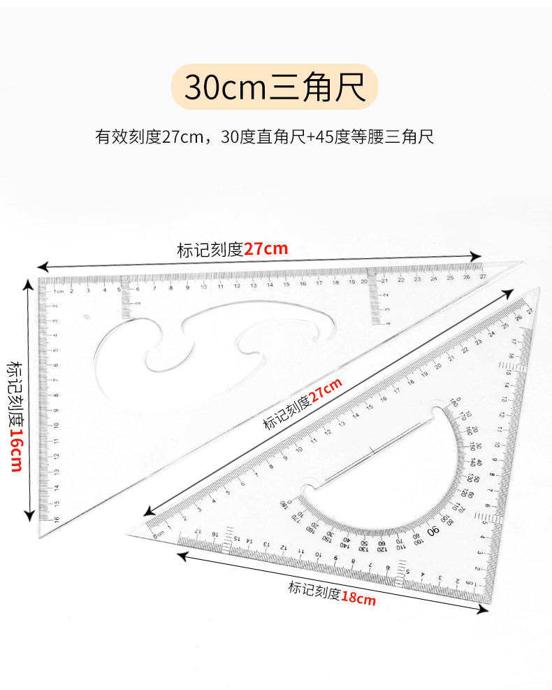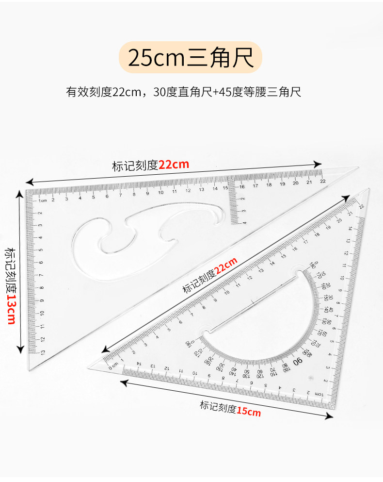 Восемь -летняя магазин восемь цветов красочного треугольника Большой правитель крупный треугольный линейка линейка.