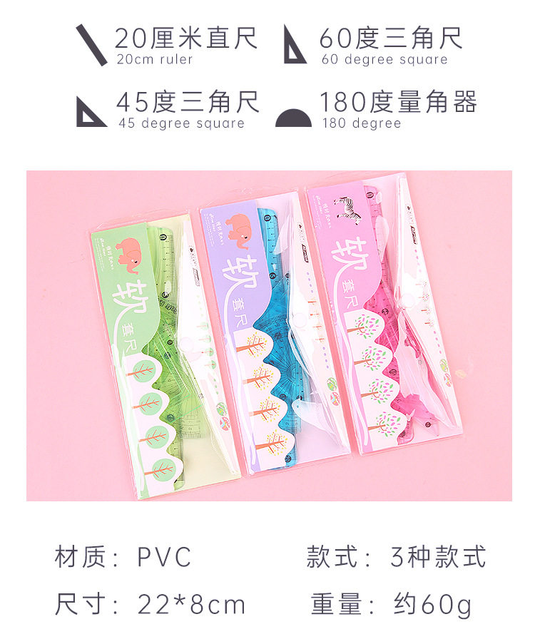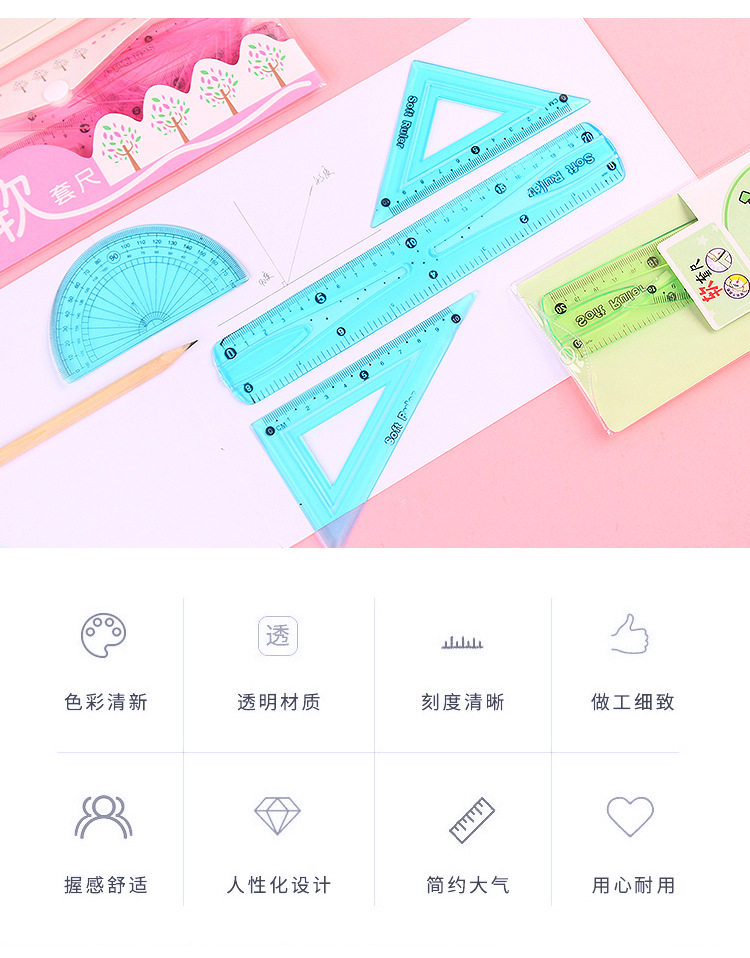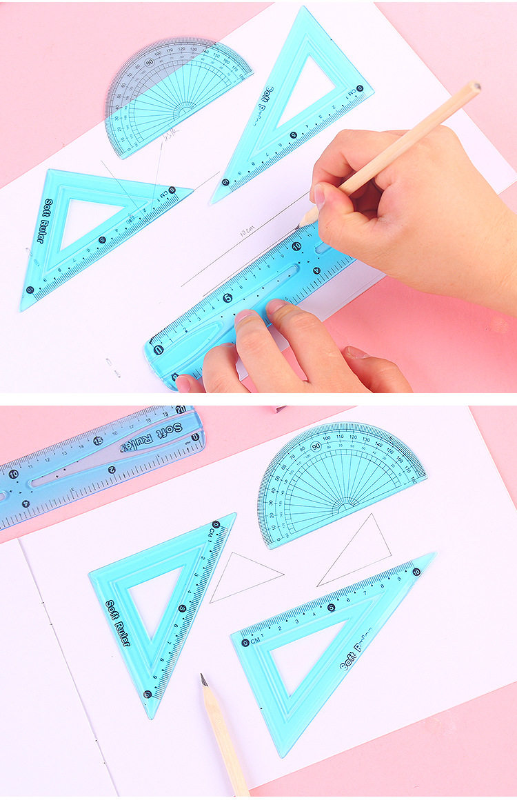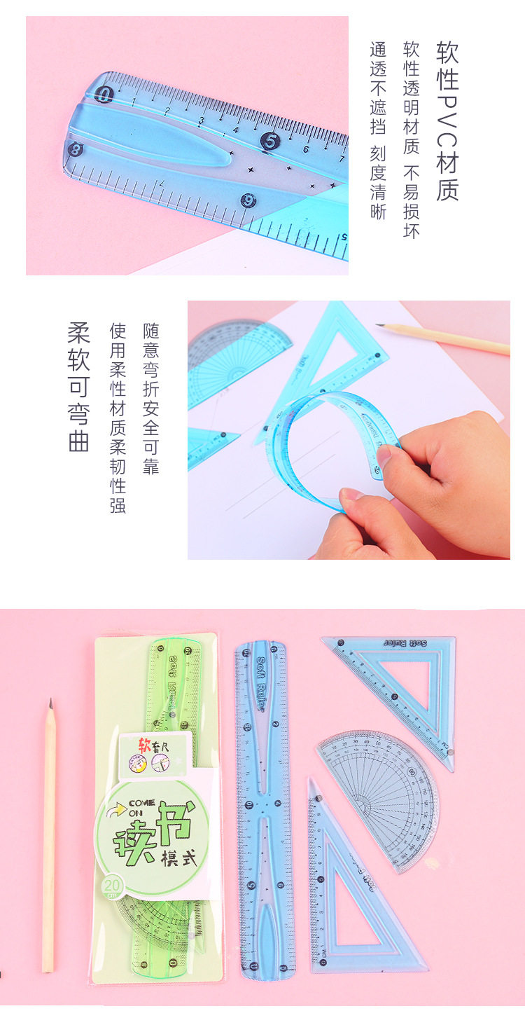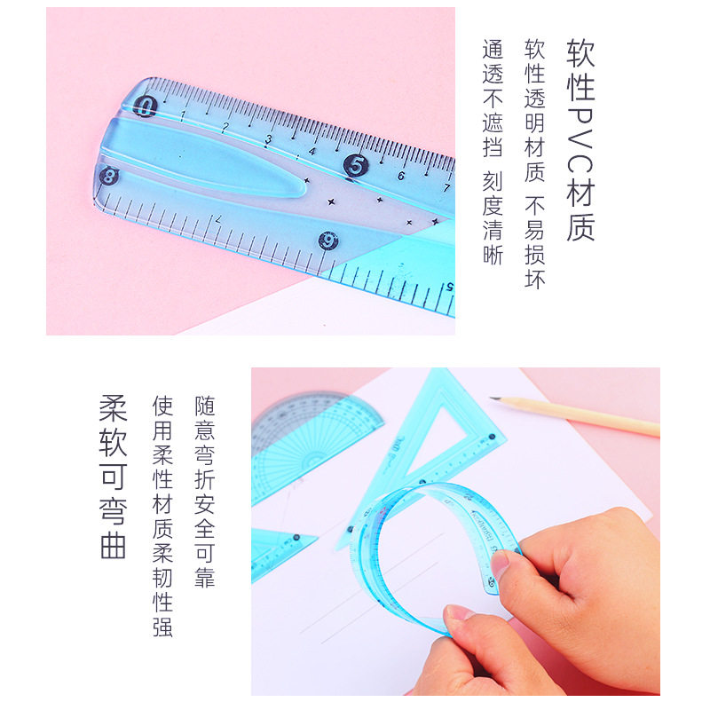 Линейка для школьников, высококачественный комплект, универсальные пластиковые канцтовары, 4 предмета, 20см
